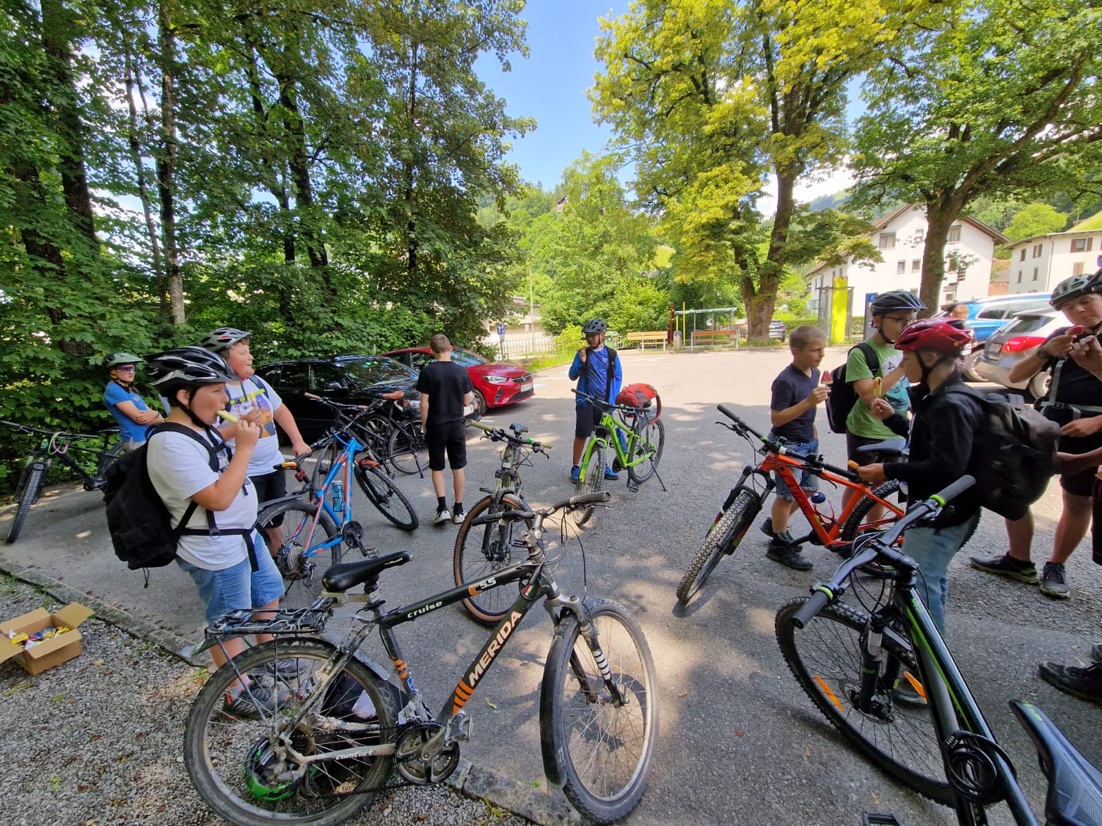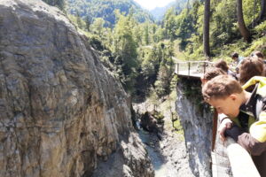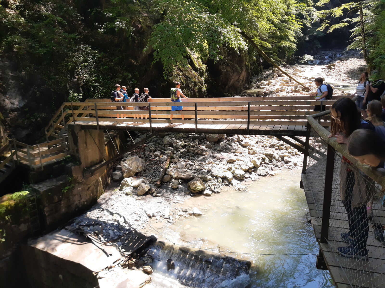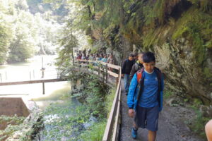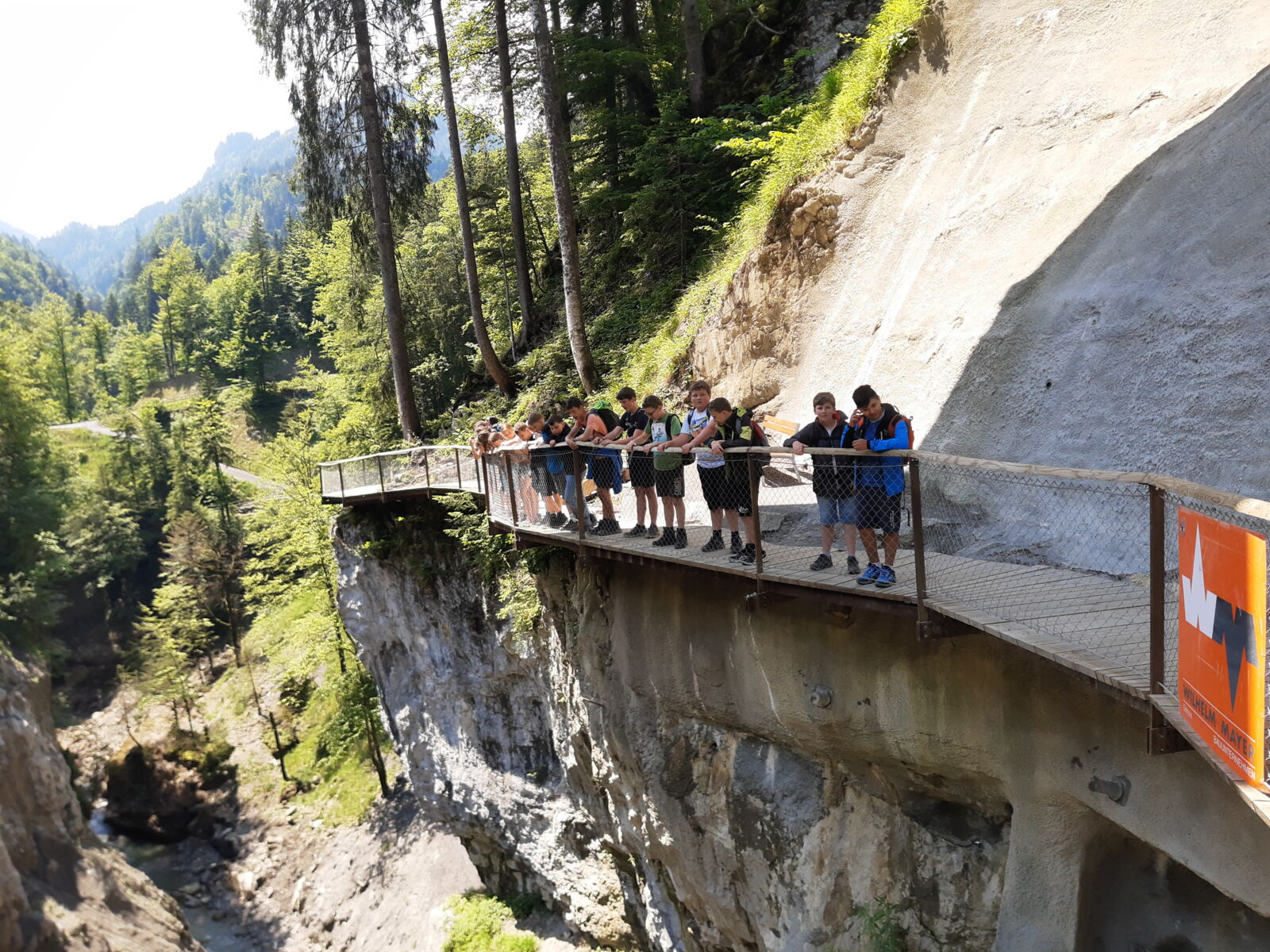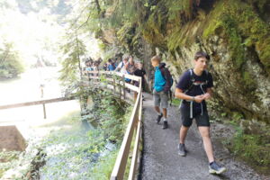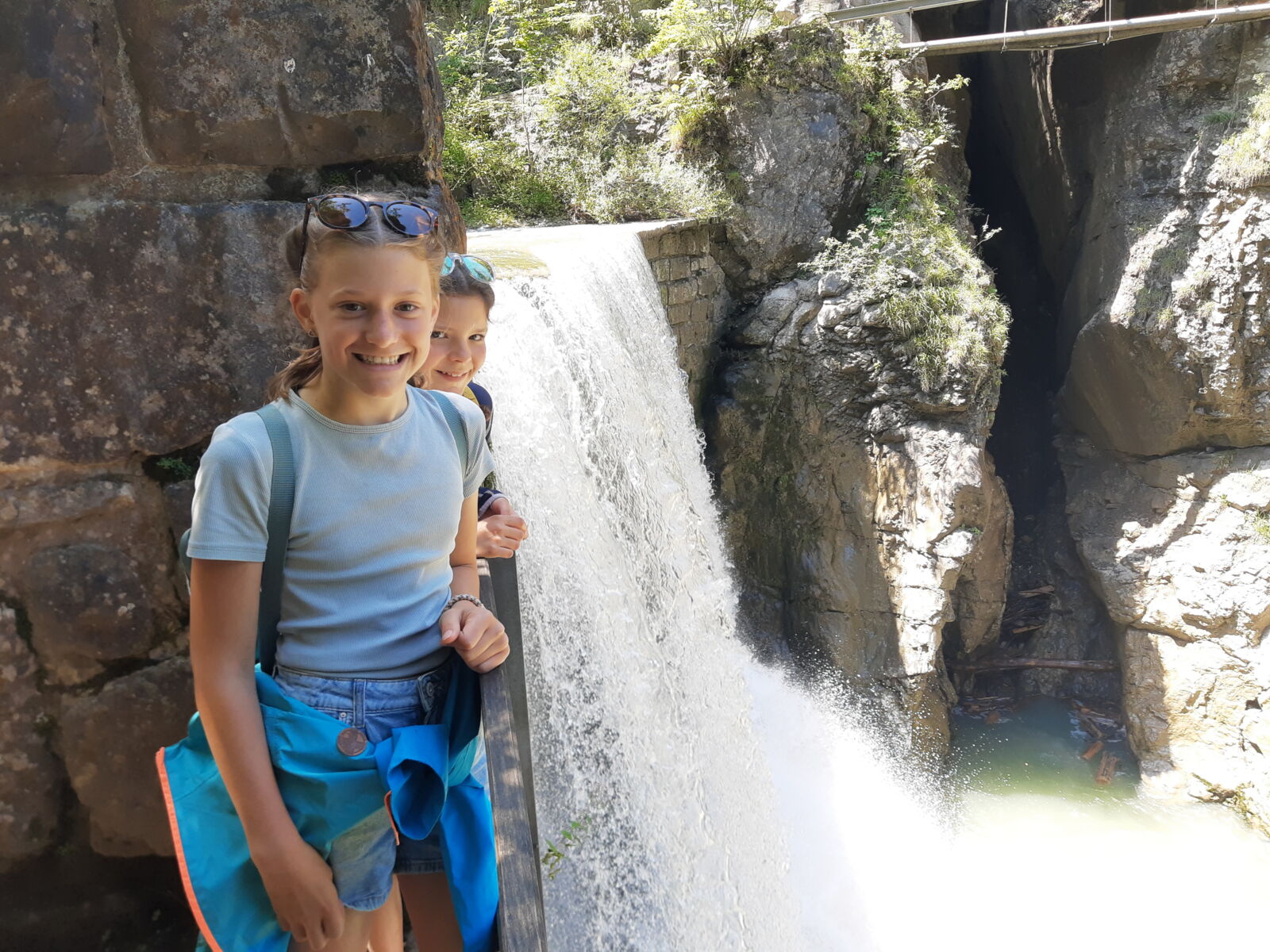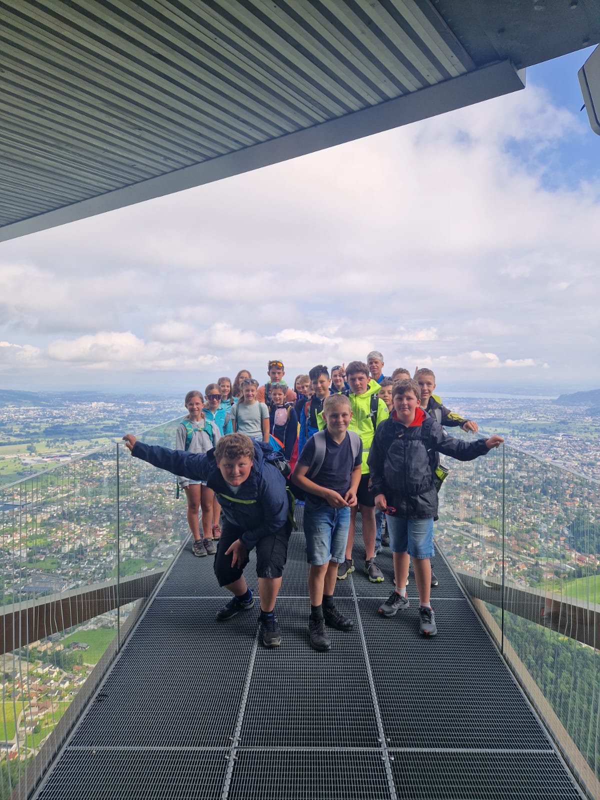 Frau Tiefenauer hatte sich keinen guten Zeitpunkt ausgewählt, ihr Knie so sehr zu strapazieren, dass es zu streiken begann. Deshalb musste die 5./6. Klasse an diesem Tag leider ohne sie auskommen, was dank qualifiziertem Ersatz (Frau Tiefenauer next generation) kein Problem darstellte. Jedenfalls brauchte man für diesen sportlichen Ausflug zwei gesunde Beine. Die Kinder bewältigten aber die insgesamt etwa 50 Kilometer auf dem Velo nach Dornbirn und zurück und das bisschen Wandern den Karren hinunter und durch die Rappenlochschlucht spielend. Kälteresistente wagten sich auf der Heimfahrt sogar in den Alten Rhein, um sich etwas abzukühlen.