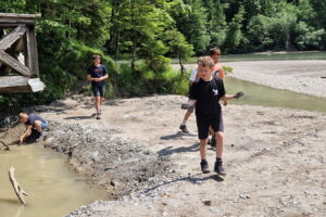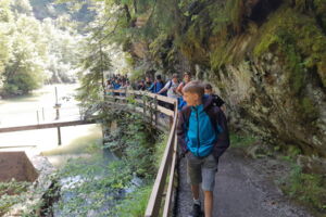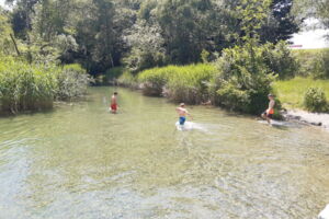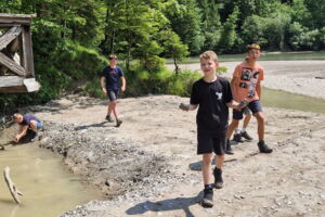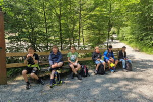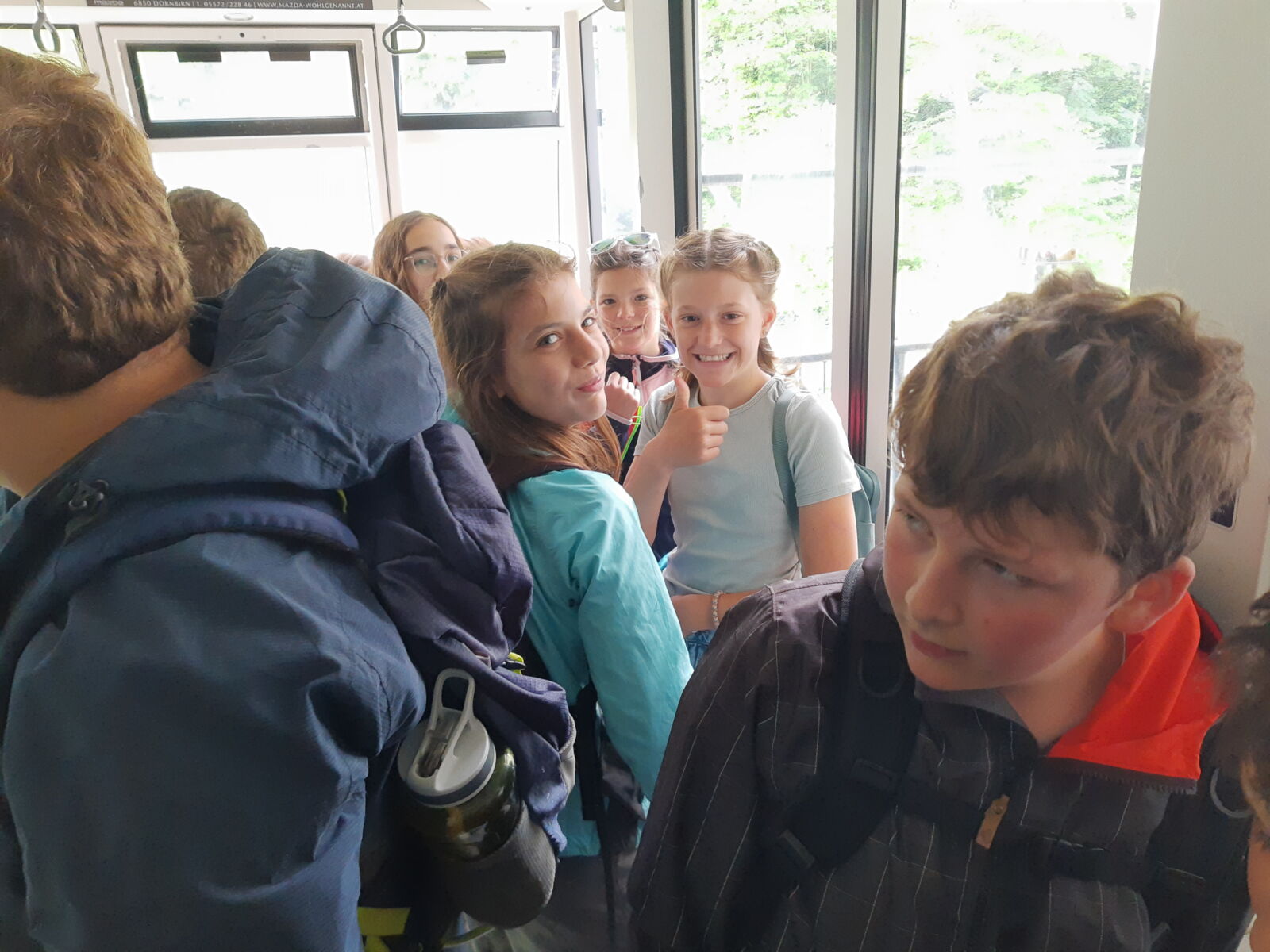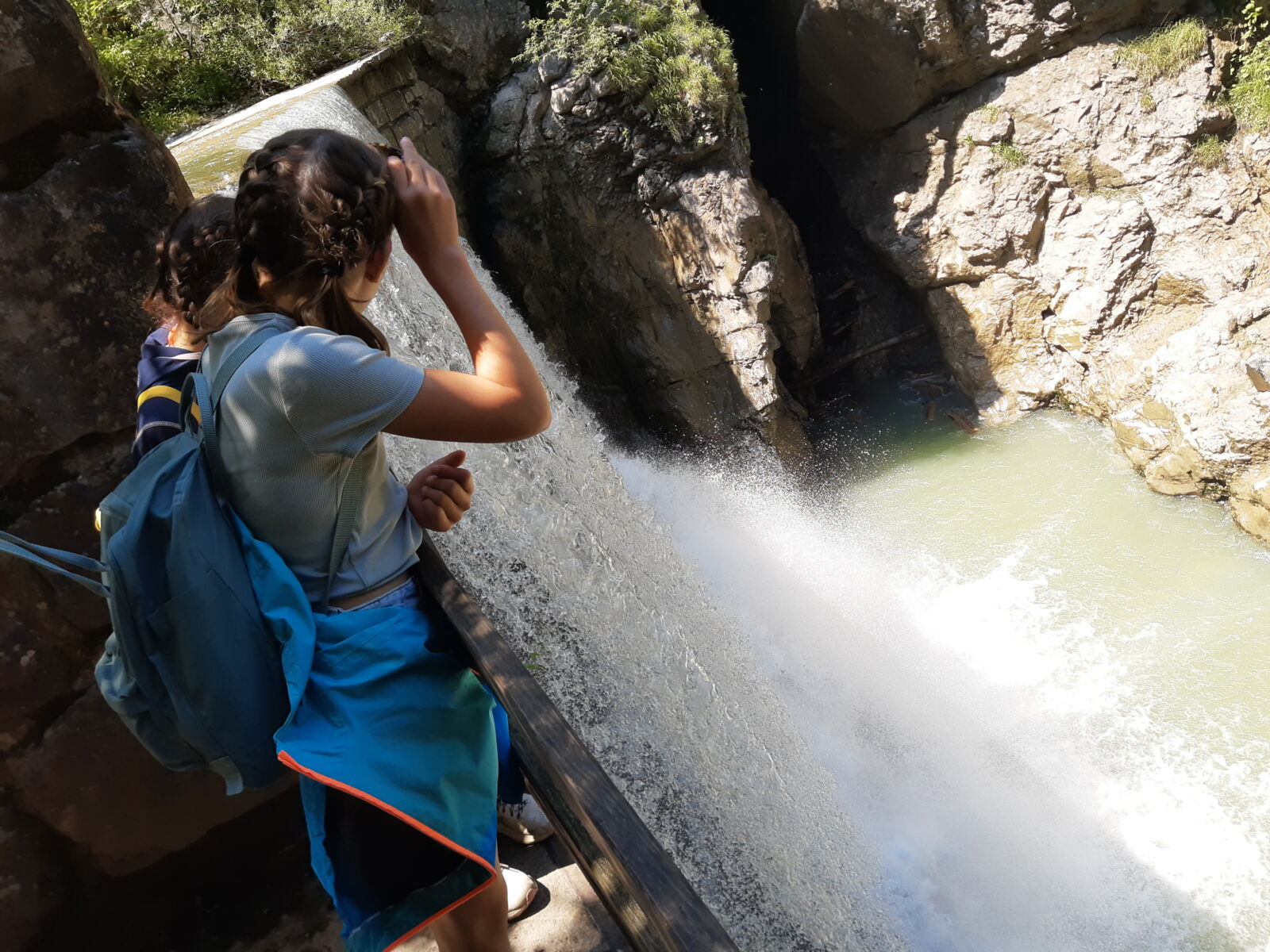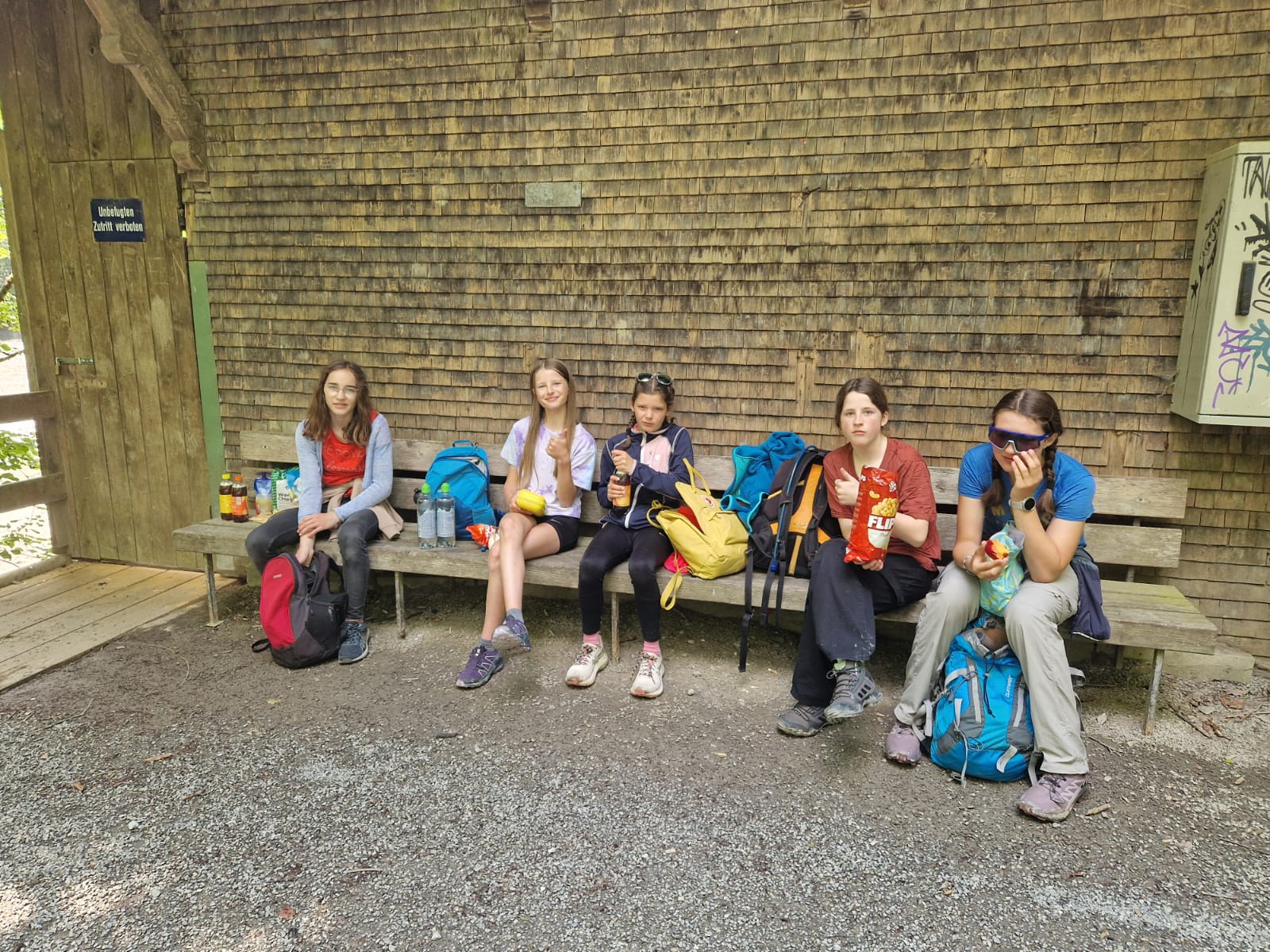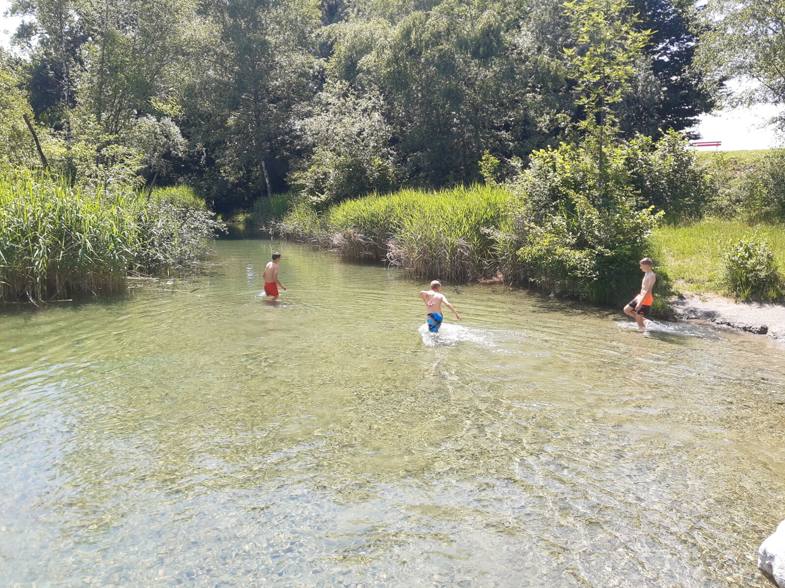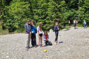 Frau Tiefenauer hatte sich keinen guten Zeitpunkt ausgewählt, ihr Knie so sehr zu strapazieren, dass es zu streiken begann. Deshalb musste die 5./6. Klasse an diesem Tag leider ohne sie auskommen, was dank qualifiziertem Ersatz (Frau Tiefenauer next generation) kein Problem darstellte. Jedenfalls brauchte man für diesen sportlichen Ausflug zwei gesunde Beine. Die Kinder bewältigten aber die insgesamt etwa 50 Kilometer auf dem Velo nach Dornbirn und zurück und das bisschen Wandern den Karren hinunter und durch die Rappenlochschlucht spielend. Kälteresistente wagten sich auf der Heimfahrt sogar in den Alten Rhein, um sich etwas abzukühlen.