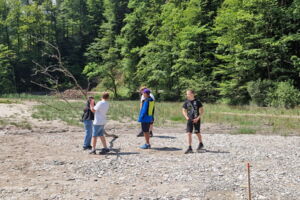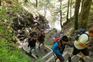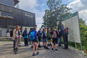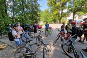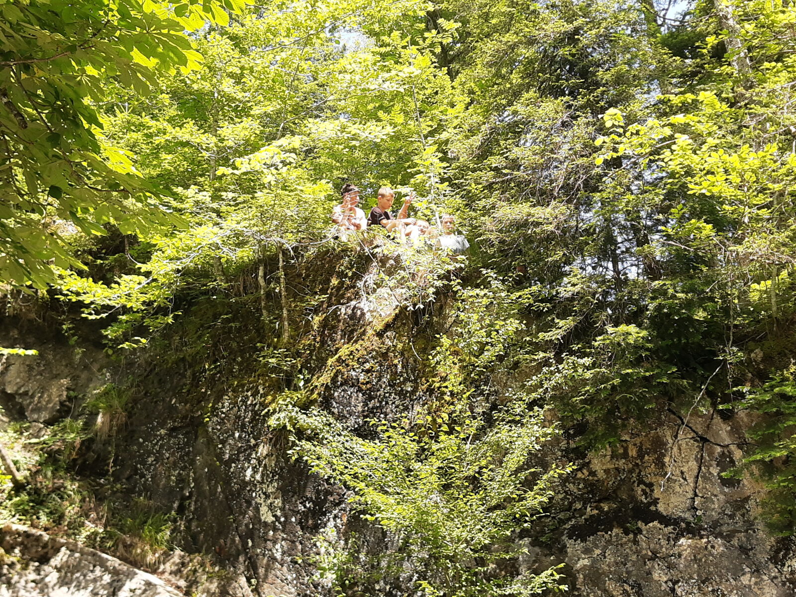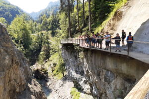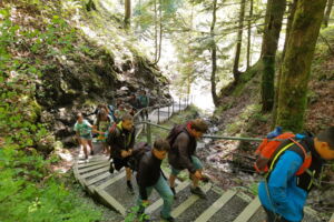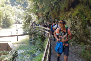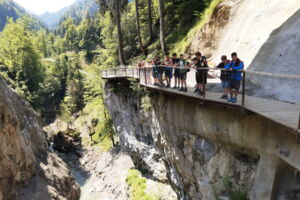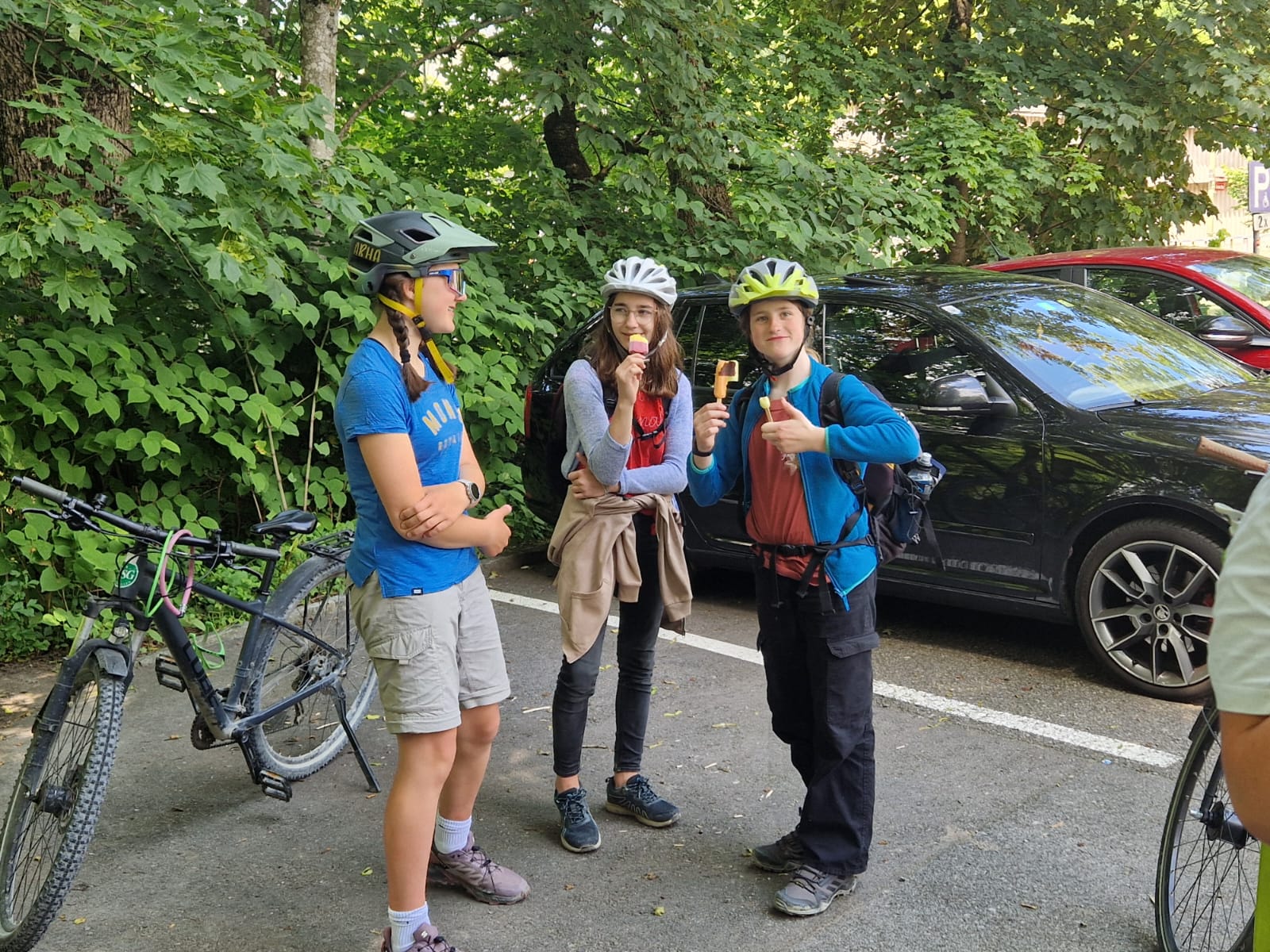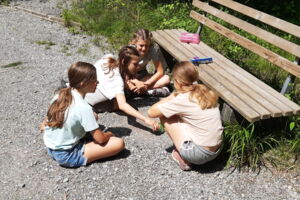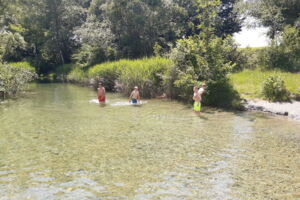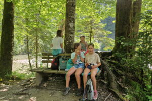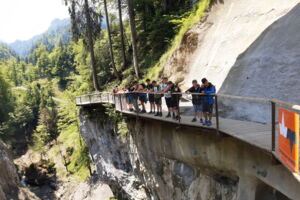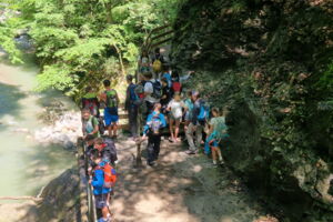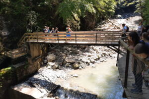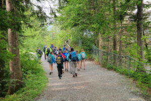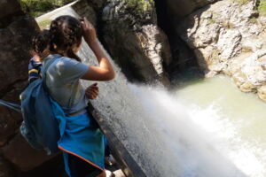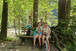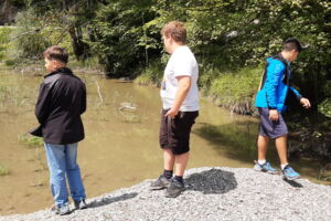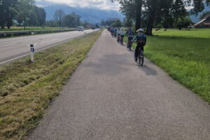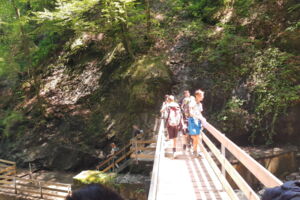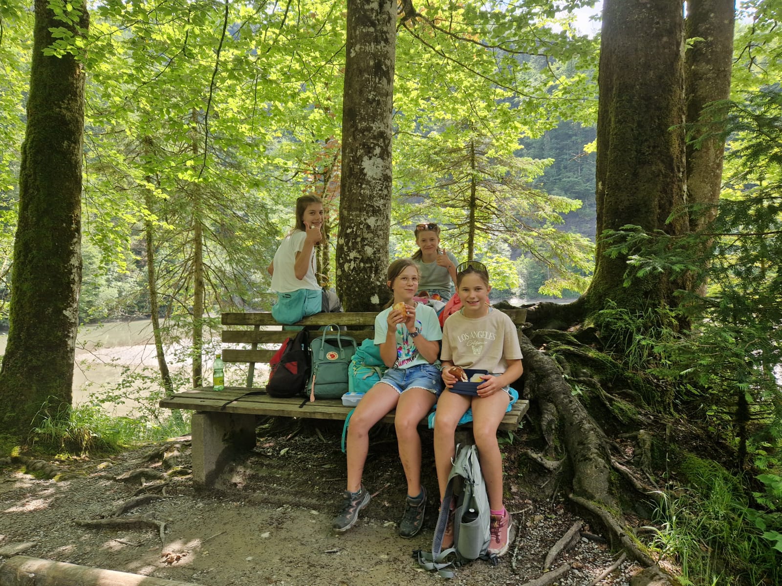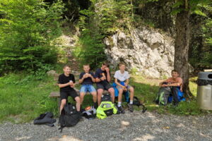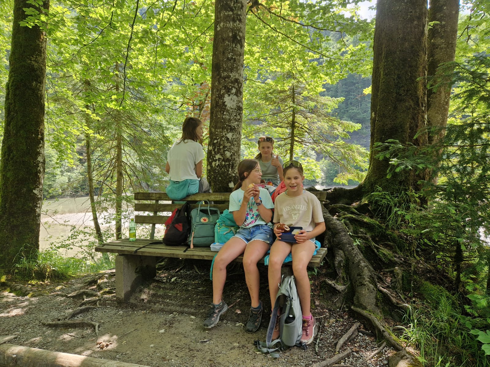 Frau Tiefenauer hatte sich keinen guten Zeitpunkt ausgewählt, ihr Knie so sehr zu strapazieren, dass es zu streiken begann. Deshalb musste die 5./6. Klasse an diesem Tag leider ohne sie auskommen, was dank qualifiziertem Ersatz (Frau Tiefenauer next generation) kein Problem darstellte. Jedenfalls brauchte man für diesen sportlichen Ausflug zwei gesunde Beine. Die Kinder bewältigten aber die insgesamt etwa 50 Kilometer auf dem Velo nach Dornbirn und zurück und das bisschen Wandern den Karren hinunter und durch die Rappenlochschlucht spielend. Kälteresistente wagten sich auf der Heimfahrt sogar in den Alten Rhein, um sich etwas abzukühlen.