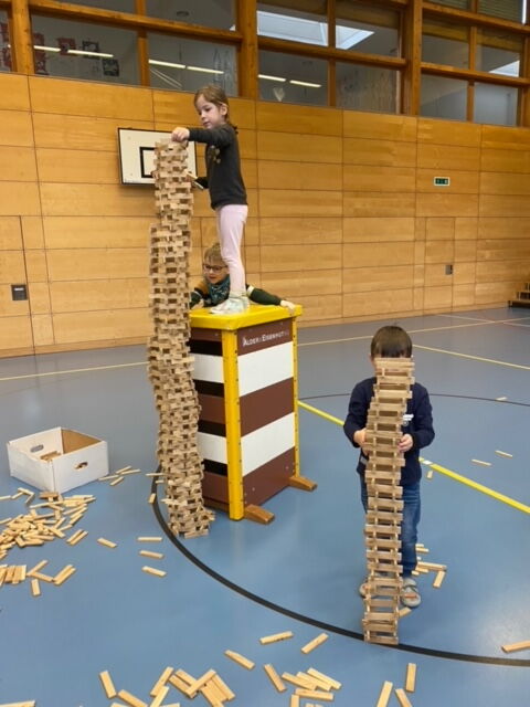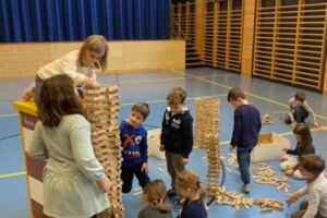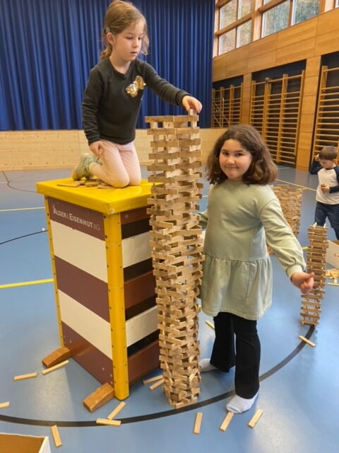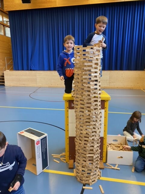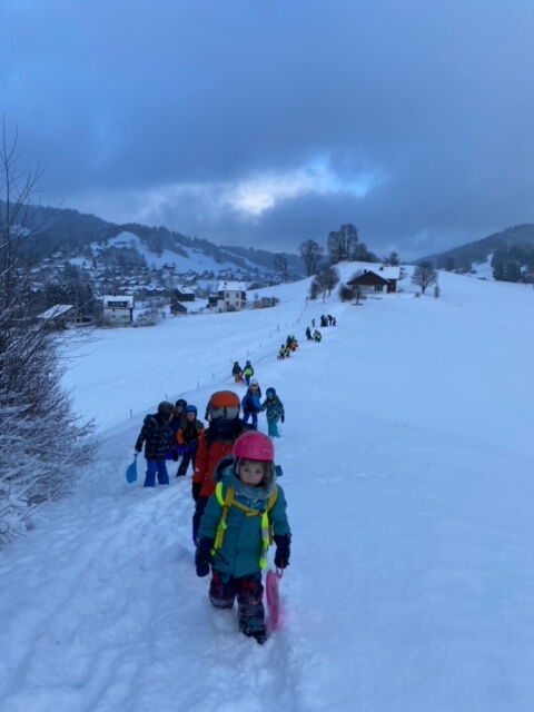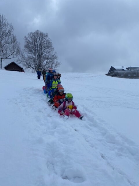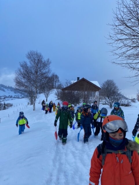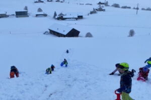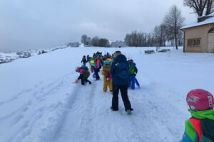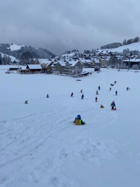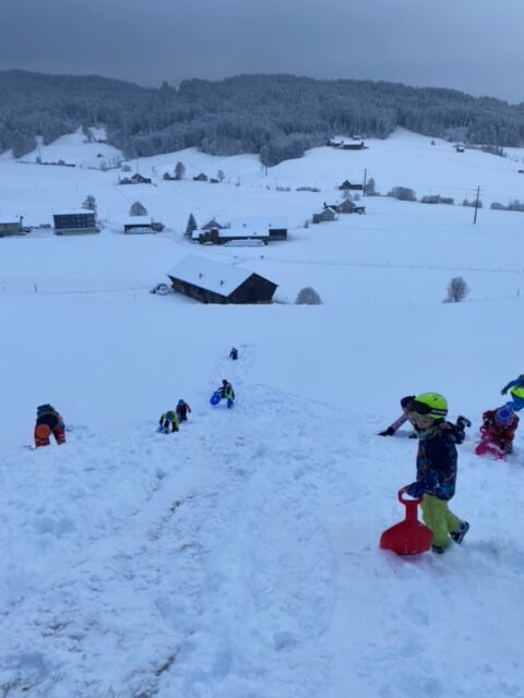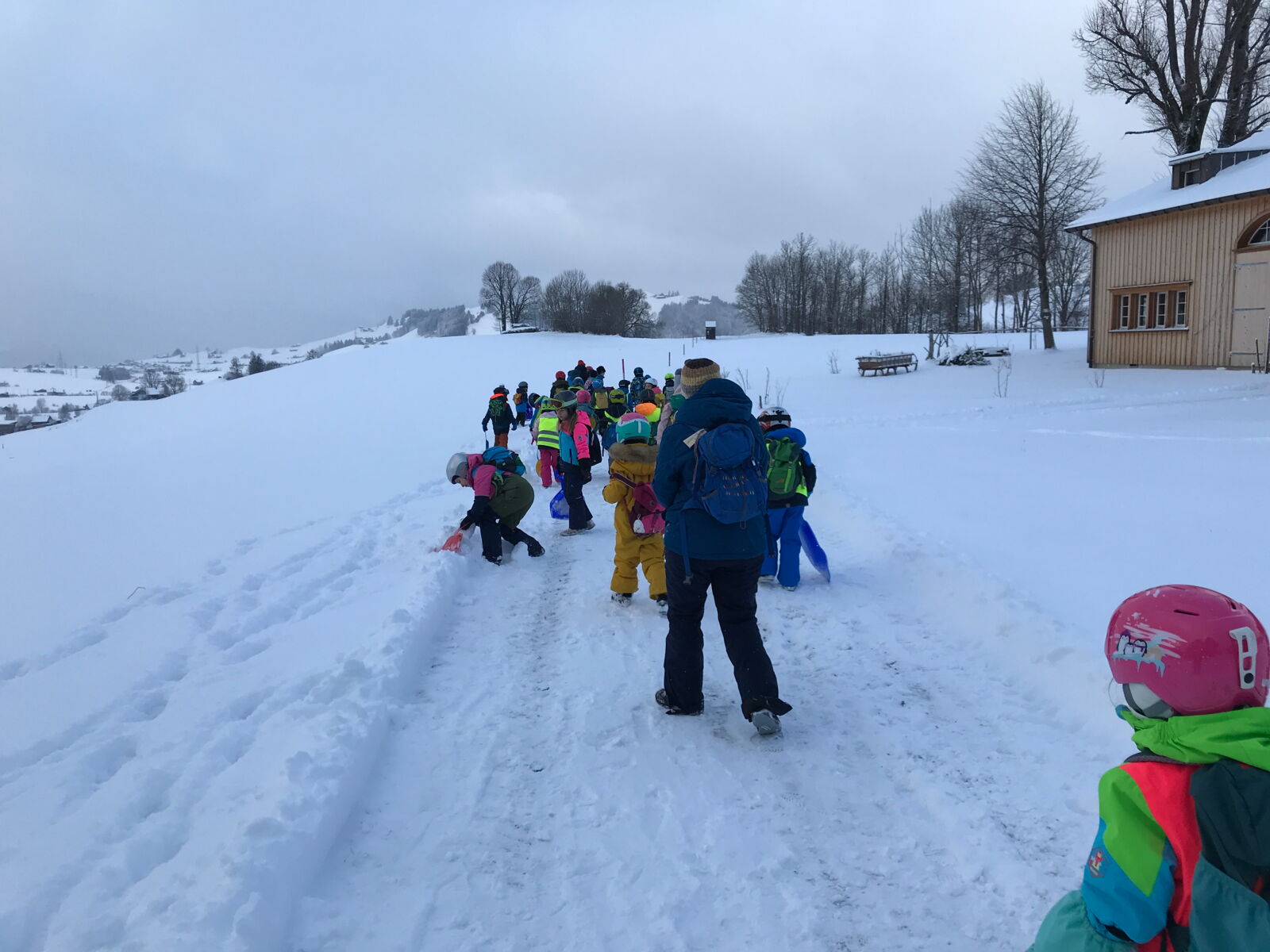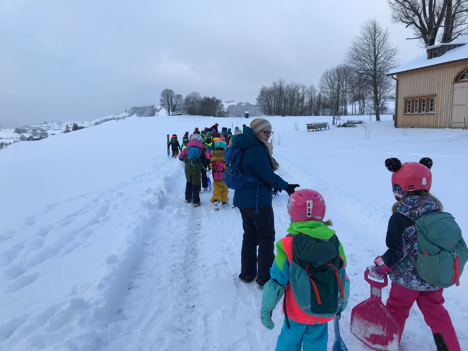 Während die grossen Schüler im Skilager waren, kamen die jüngeren in den Genuss einer abwechslungsreichen Sportwoche. Am Montag starteten die Kindergärtner und 1./2. Klässler gemeinsam. Verschiedene Posten standen zur Auswahl, so fand jedes Kind etwas nach seinem Gusto. Am Dienstag verwandelte sich die Turnhalle in eine Gerätelandschaft - "Affenfangis" ist bereits ein beliebter Fixpunkt dieser Woche. Während die Kindergärtner Mitte Woche einen Film schauten und Geduld übten im Türmebauen, machten sich die 1./2. Klässler auf den Weg nach Grüsch. Wider Erwarten war das Wetter trocken und es blickte sogar die Sonne durch. Die Schüler kurvten über die herrlichen Pisten und hatten riesigen Spass an diesen zwei Tagen. Der gemeinsame Abschluss am Freitag führte uns mit dem Schulbus, Privatautos und "Gaiserbähnli" nach Gais. Da die Eisbahn leider geschlossen blieb, genossen wir den Schnee umso mehr mit "Füddliböbbla" und Austoben auf dem Spielplatz. Es war wieder einmal mehr eine erlebnisreiche Woche mit ganz tollen Kindern.