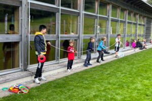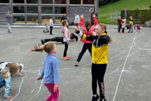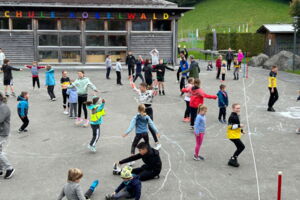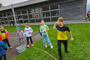 Dieses Jahr wurden den Kindern vielfältige Bewegungs- und Spielmöglichkeiten auf dem Schulareal Kobelwald geboten, welche sie in gemischten Gruppen ausgiebig nutzten. Das gemeinsame Mittagessen rundete für die Jüngeren den Anlass ab. SchülerInnen der 3. bis 6. Klasse verbrauchten am Nachmittag ihre restliche Energie mit einem Stern-OL.