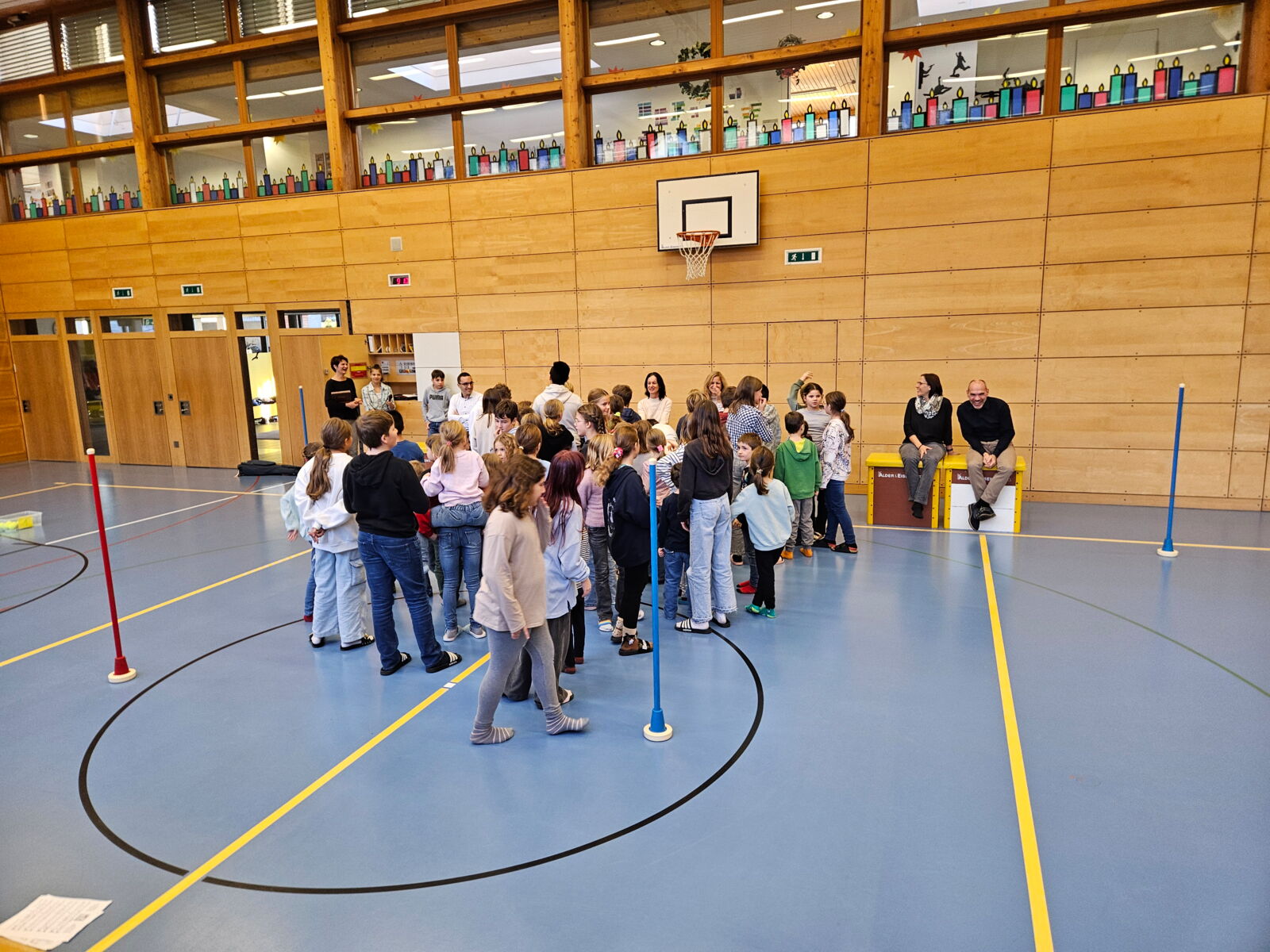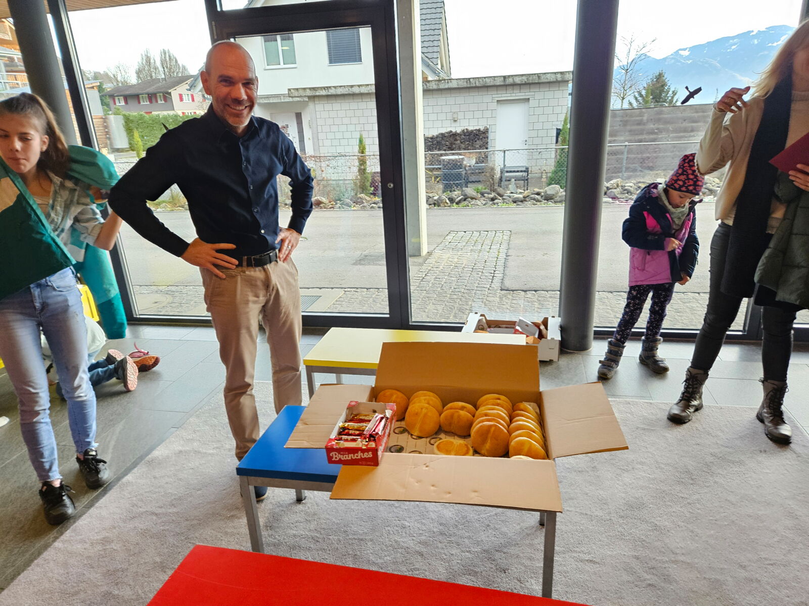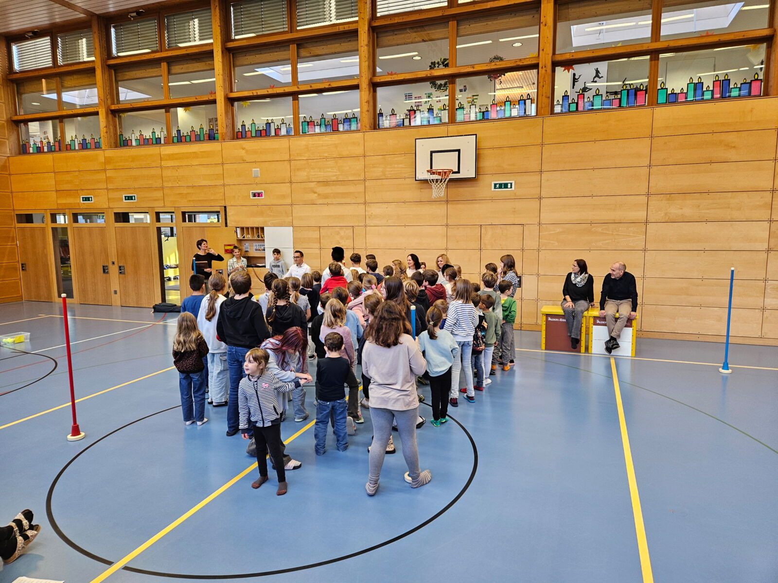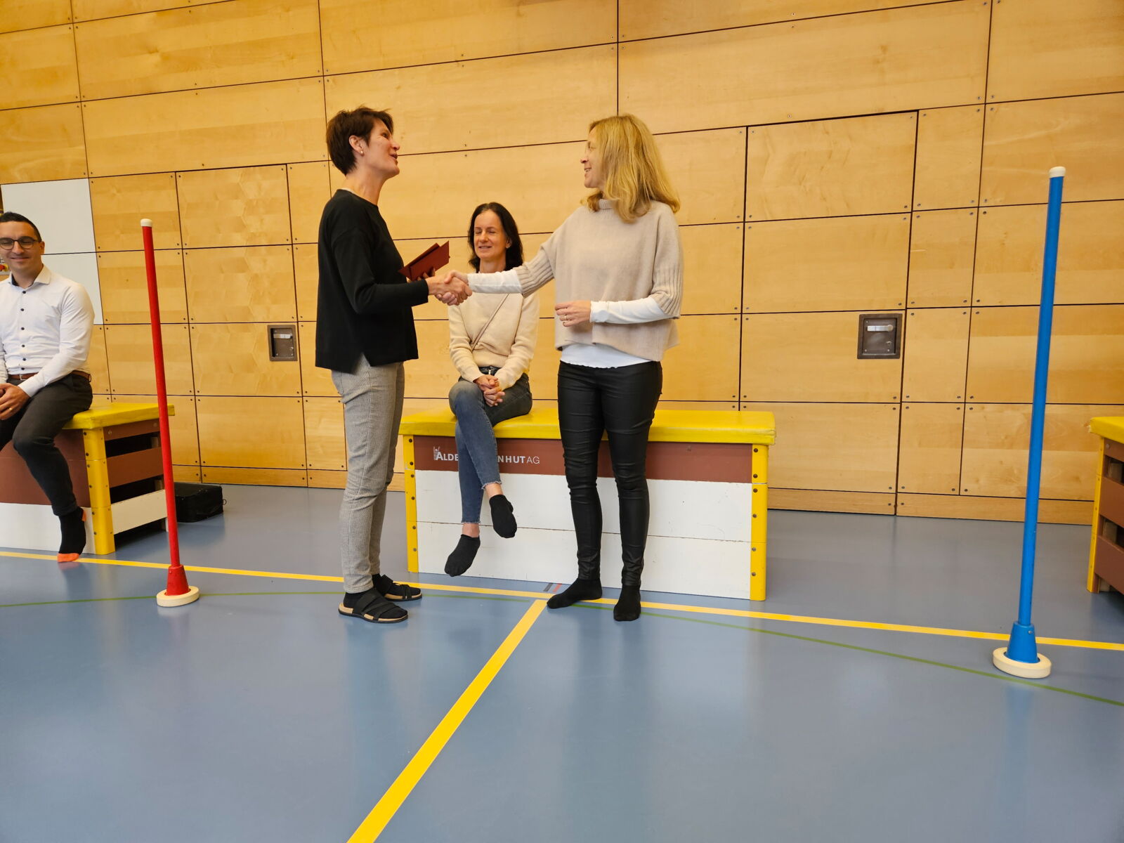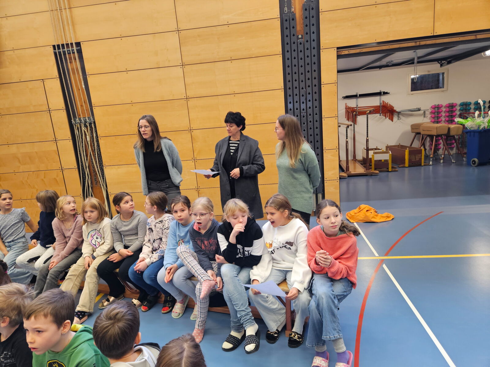 Das Personal hatte schon am Weihnachtsessen Gelegenheit gehabt, sich von unseren drei scheidenden Mitgliedern des Schulrates zu verabschieden. Dabei wollte man es aber nicht belassen. An einem stimmungsvollen, zuweilen auch lustigen kleinen Anlass waren auch alle Kinder dabei. Sie wussten erstaunlich gut über unsere Behördenmitglieder Bescheid, was sie in einem Ratespiel unter Beweis stellten. Die verlängerte Pause mit Brügeli und Weggli genossen sie natürlich auch gerne.