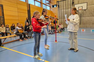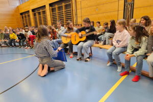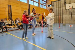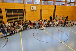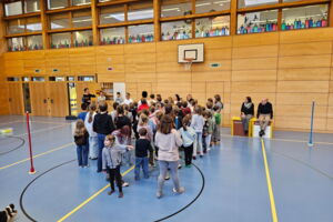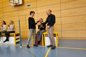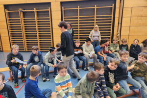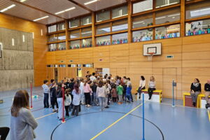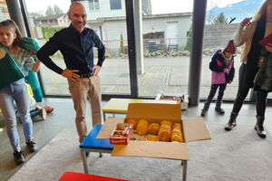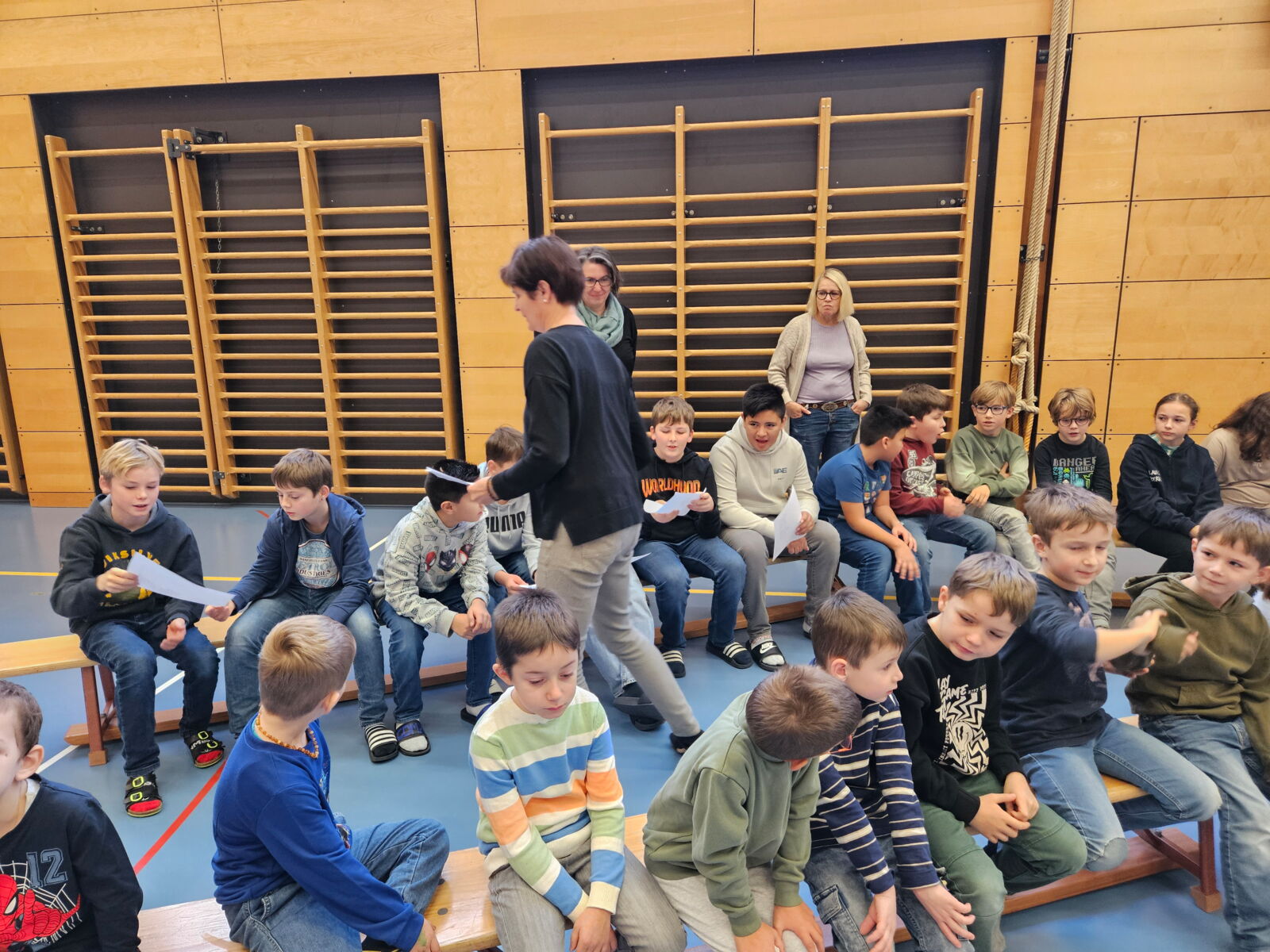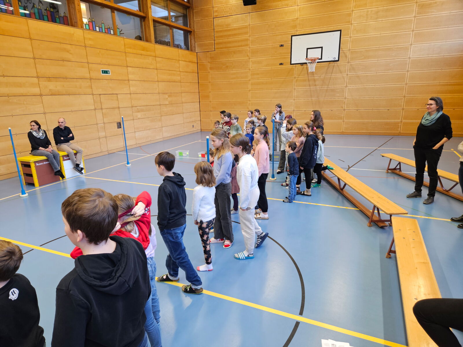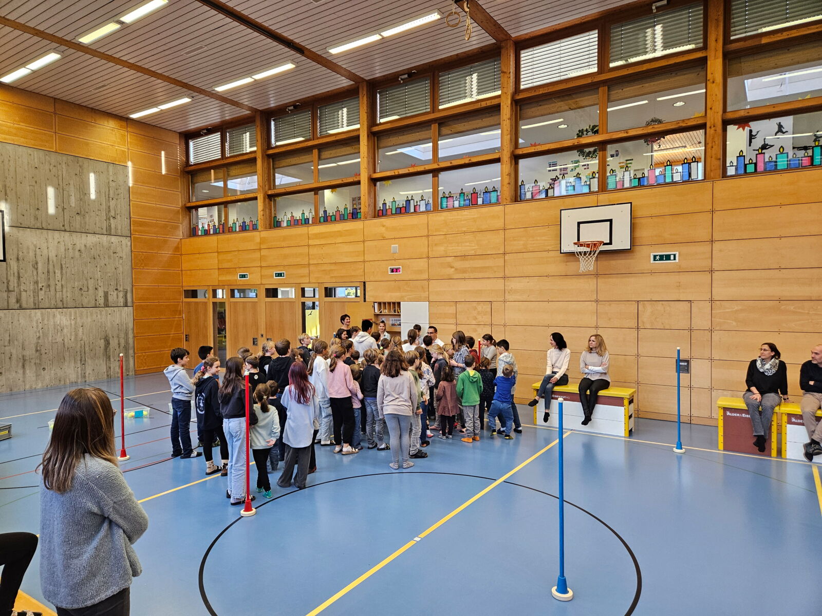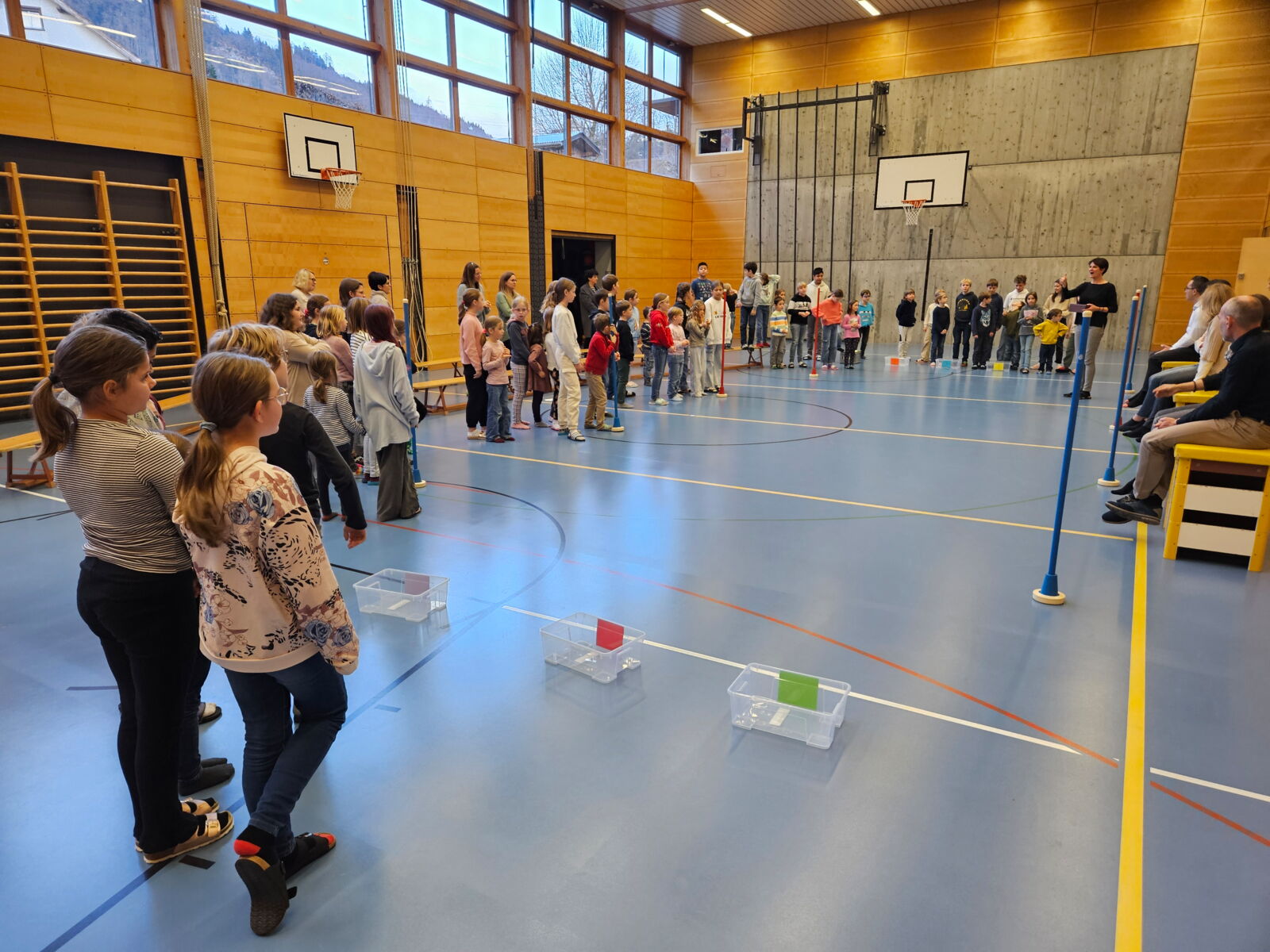 Das Personal hatte schon am Weihnachtsessen Gelegenheit gehabt, sich von unseren drei scheidenden Mitgliedern des Schulrates zu verabschieden. Dabei wollte man es aber nicht belassen. An einem stimmungsvollen, zuweilen auch lustigen kleinen Anlass waren auch alle Kinder dabei. Sie wussten erstaunlich gut über unsere Behördenmitglieder Bescheid, was sie in einem Ratespiel unter Beweis stellten. Die verlängerte Pause mit Brügeli und Weggli genossen sie natürlich auch gerne.