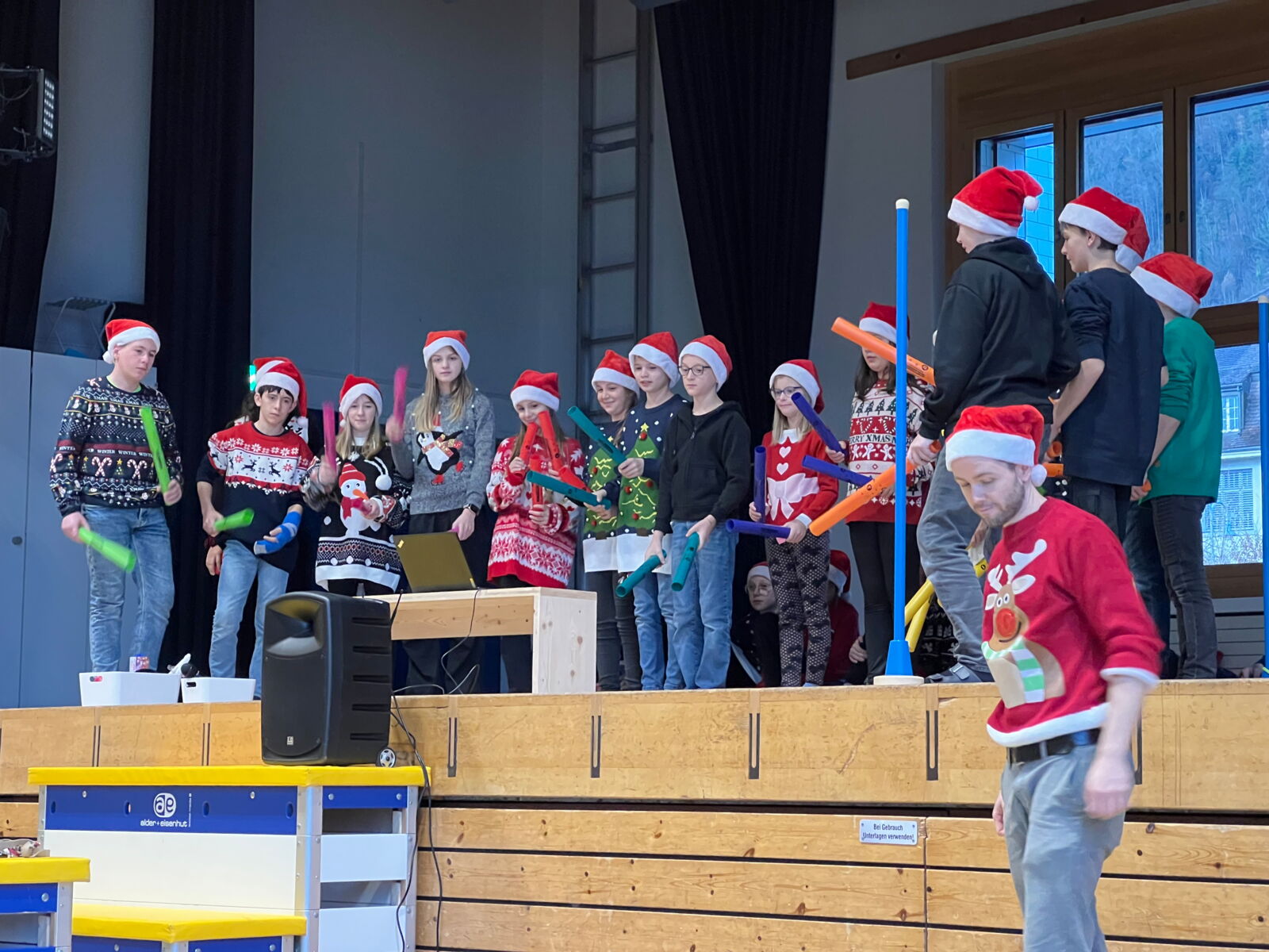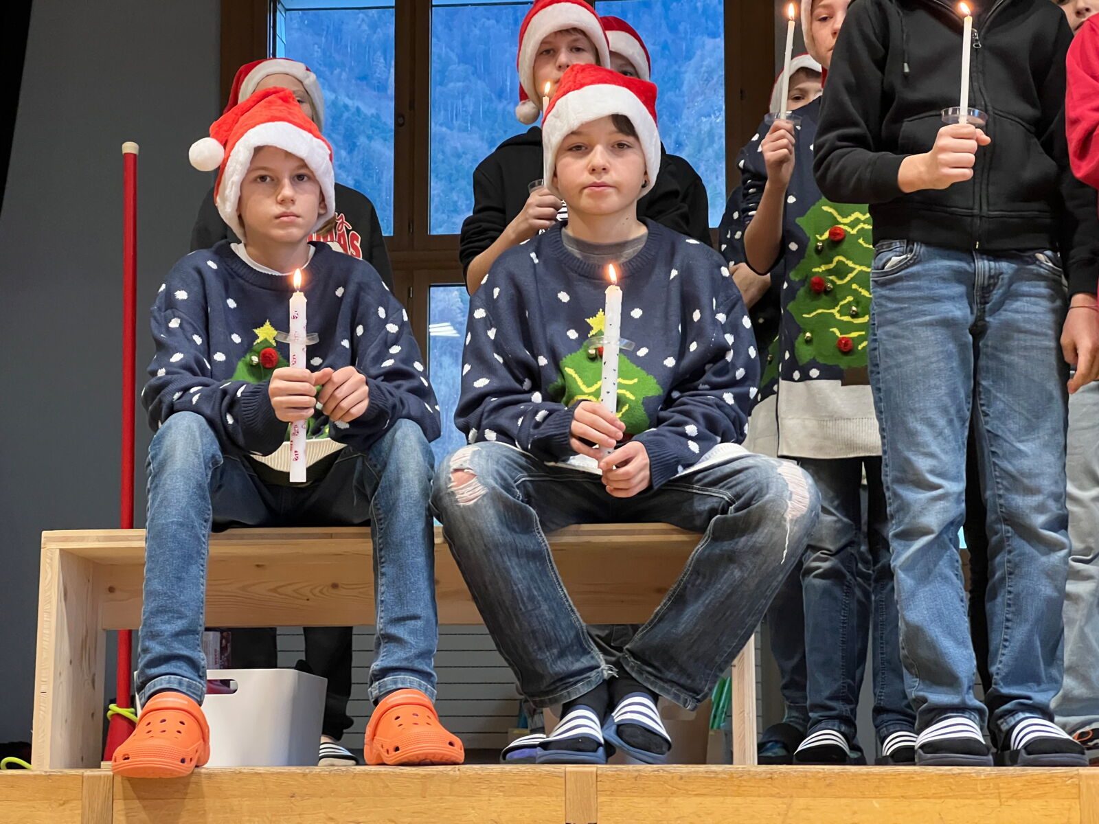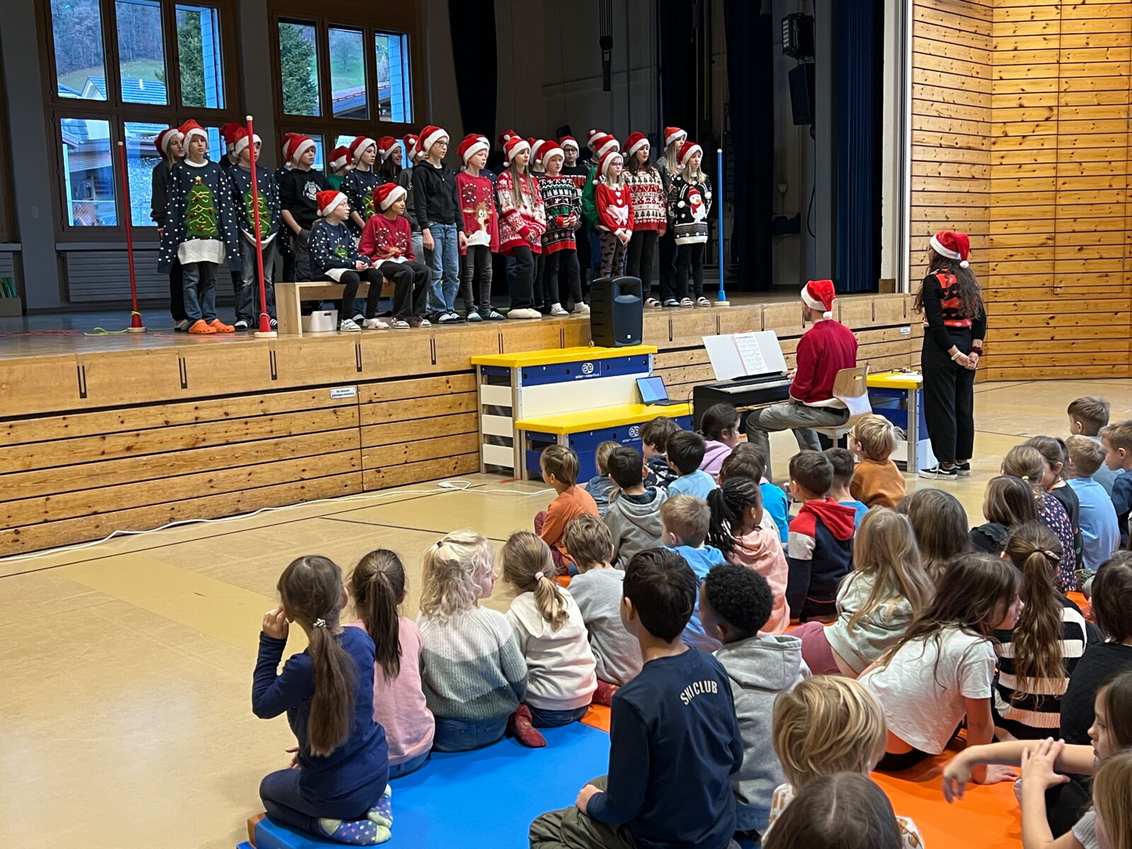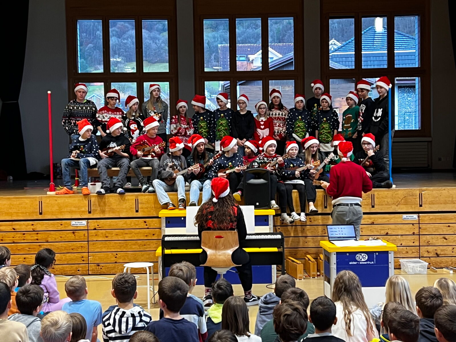 In einer stimmungsvollen Feier zum Nikolaus führten die 5. und die 6. Klasse von Frau Zäch und Herrn Breu die 1. bis 6. Klassen in den Advent. Es wurden Lieder gesungen und mit Ukulelen und orffschen Instrumentarium begleitet. Es war eine gelungene und schöne Feier zum zweiten Advent. Zu guter Letzt erhielten alle Kinder in der Klasse einen Grittibänz oder ein Samichlaussäckli.