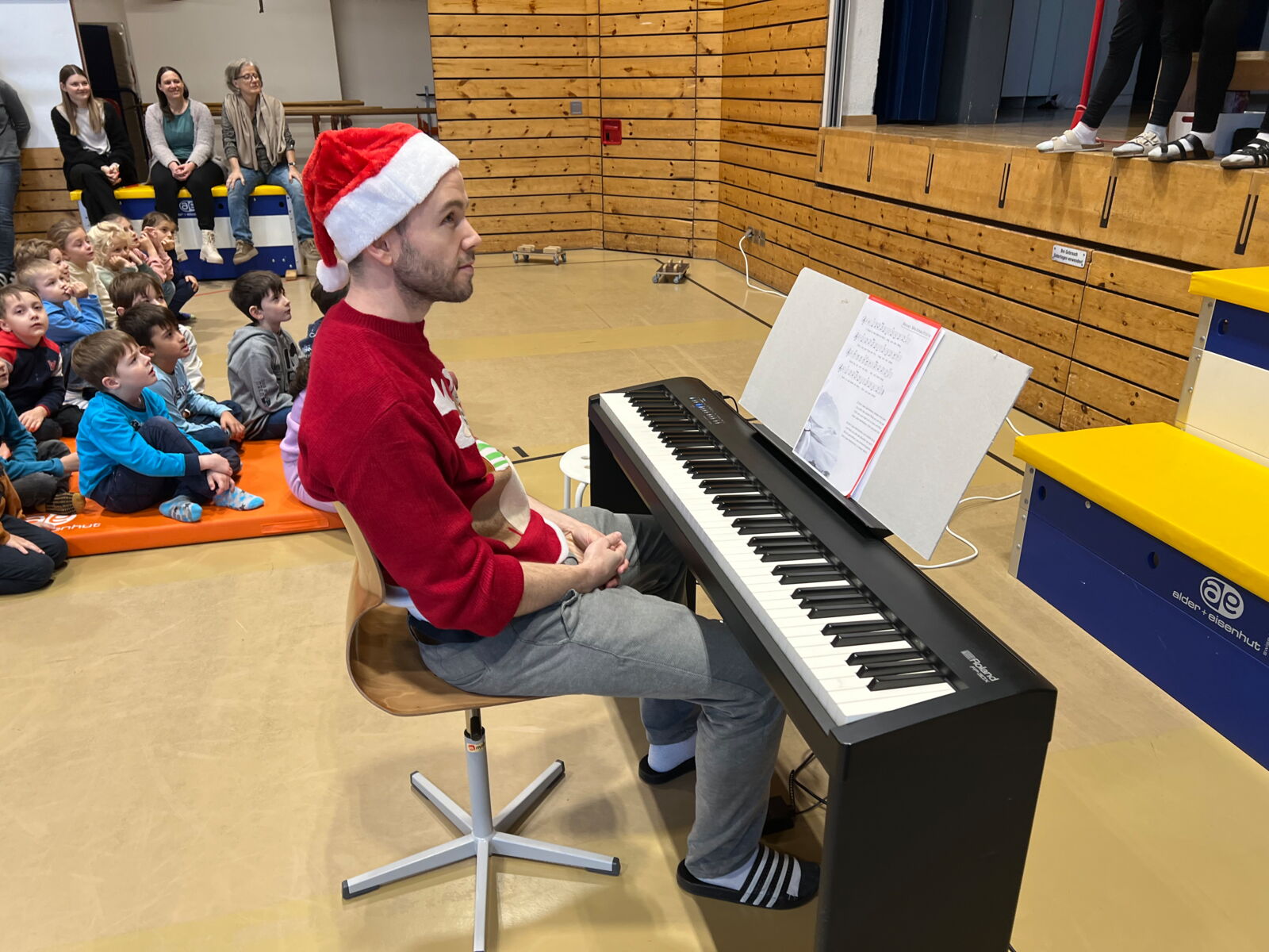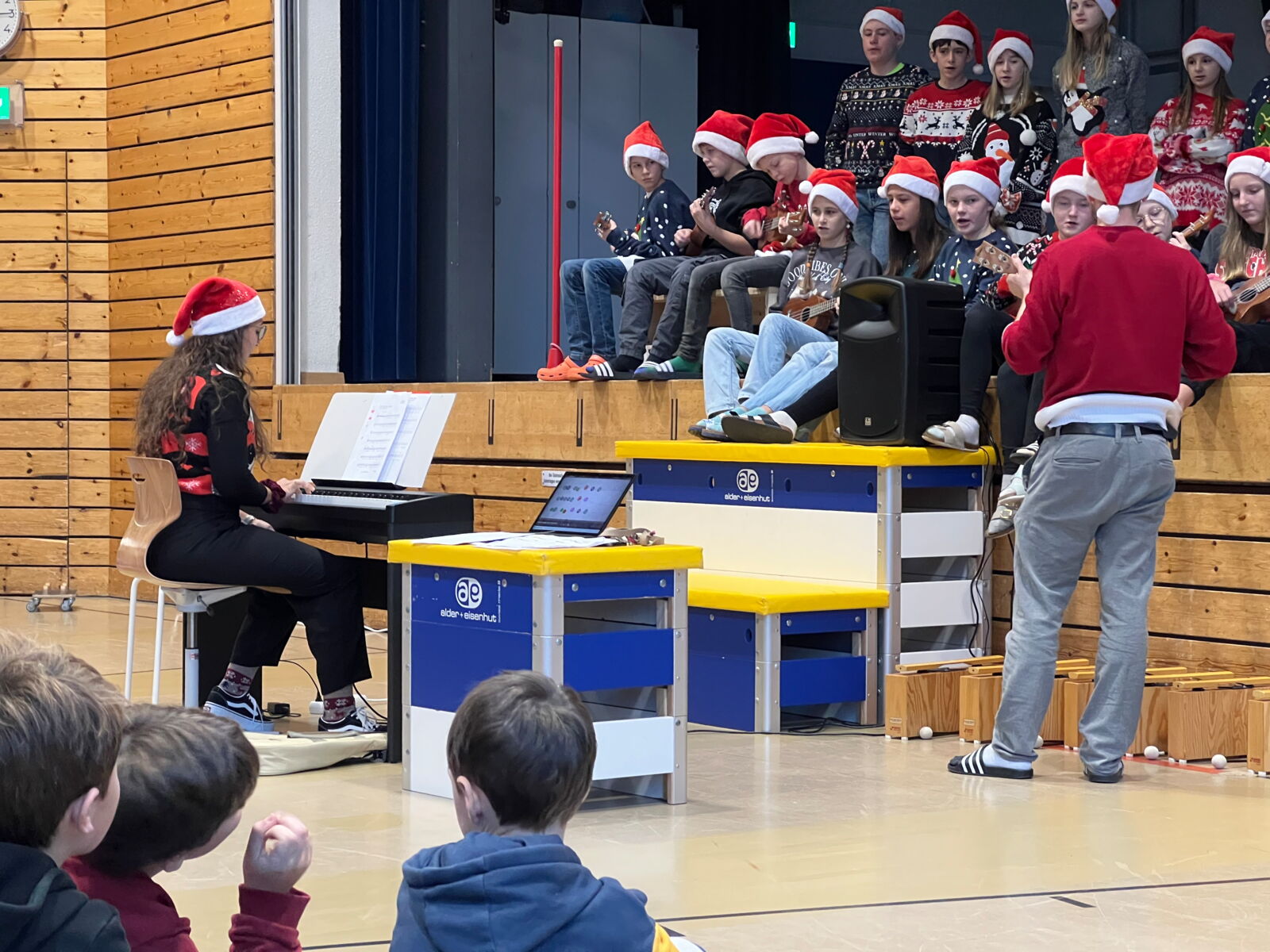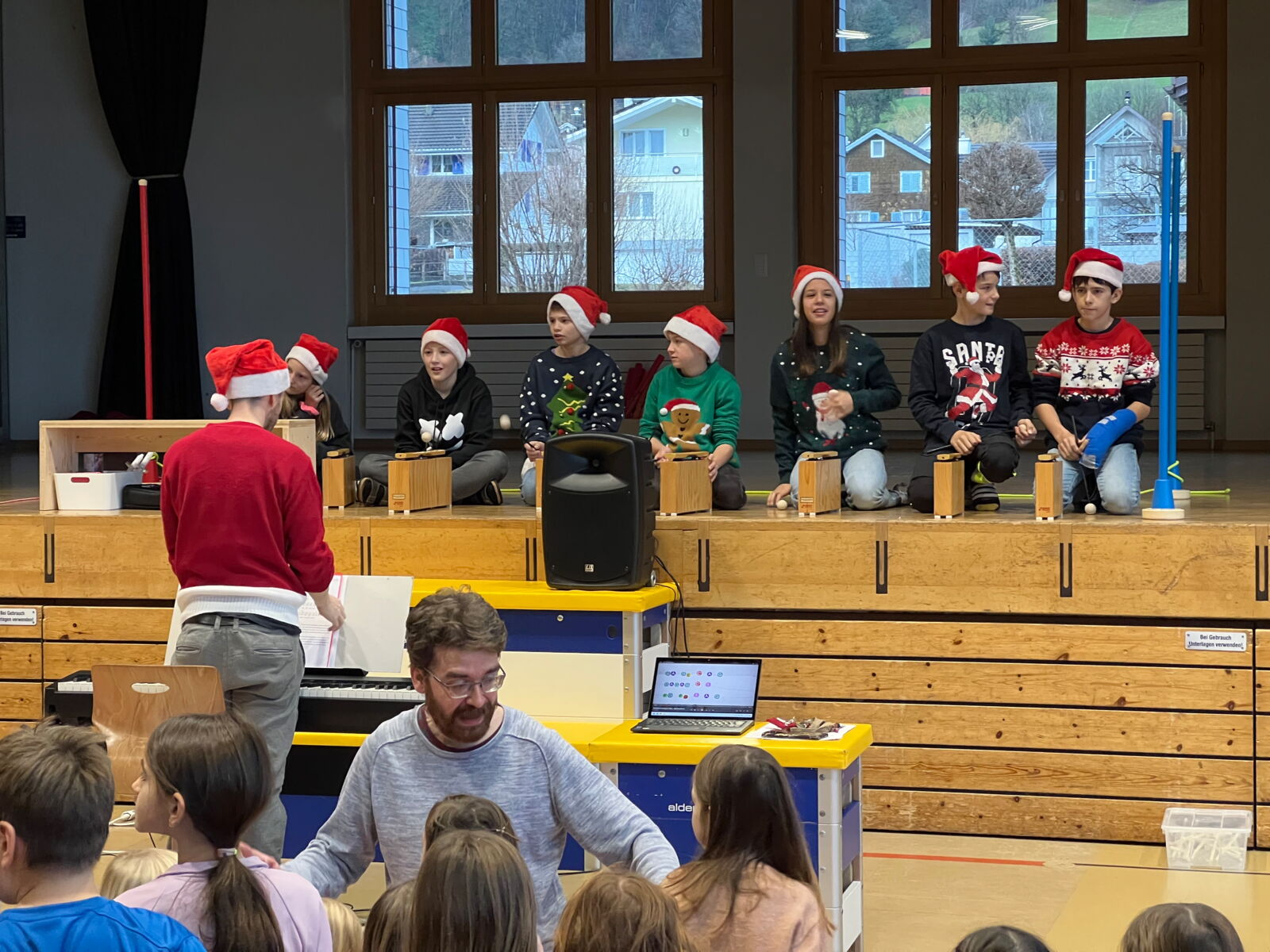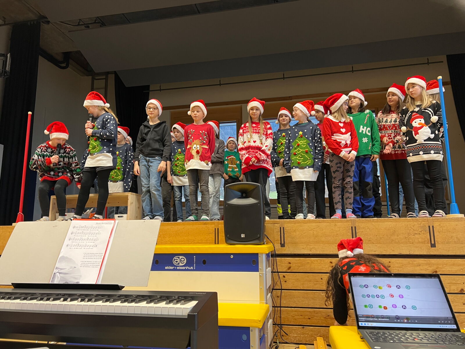 In einer stimmungsvollen Feier zum Nikolaus führten die 5. und die 6. Klasse von Frau Zäch und Herrn Breu die 1. bis 6. Klassen in den Advent. Es wurden Lieder gesungen und mit Ukulelen und orffschen Instrumentarium begleitet. Es war eine gelungene und schöne Feier zum zweiten Advent. Zu guter Letzt erhielten alle Kinder in der Klasse einen Grittibänz oder ein Samichlaussäckli.