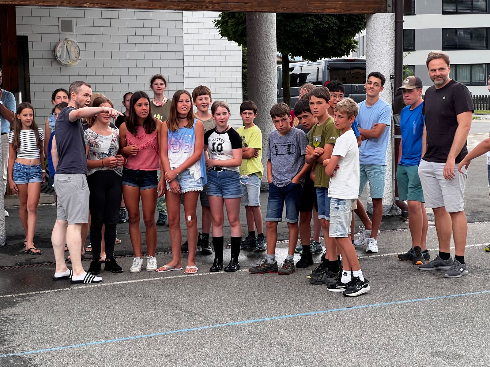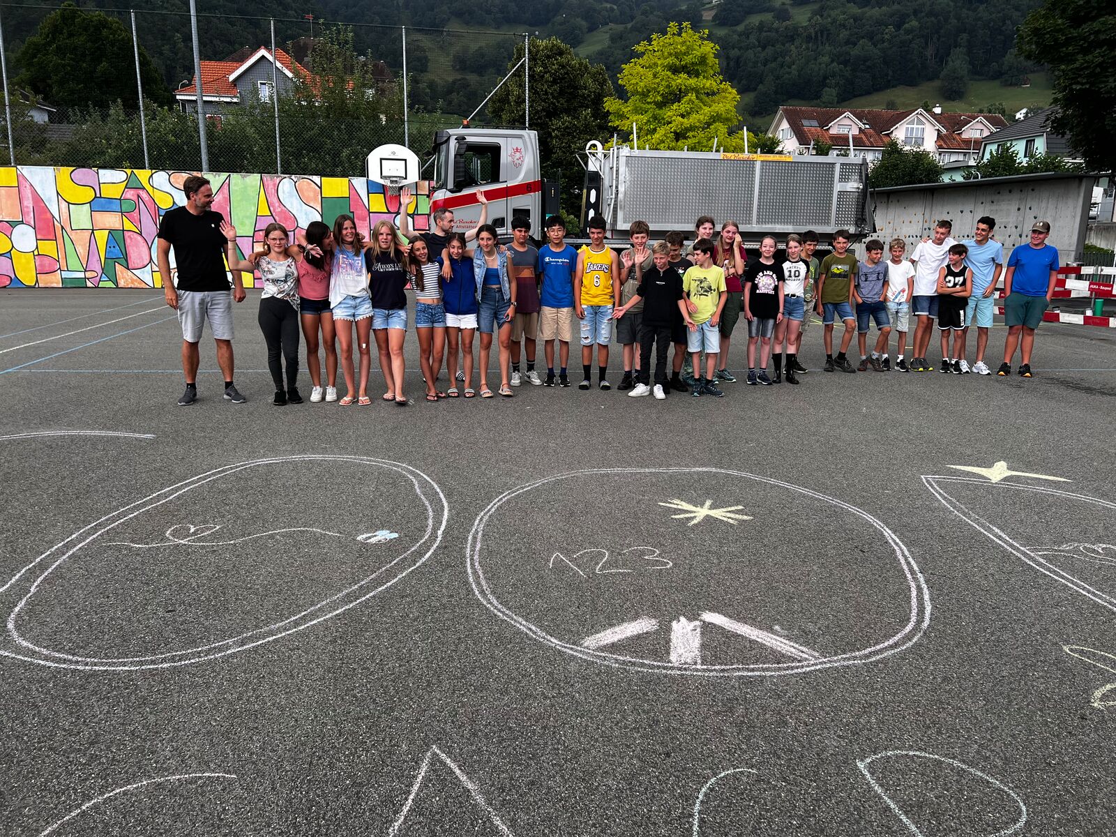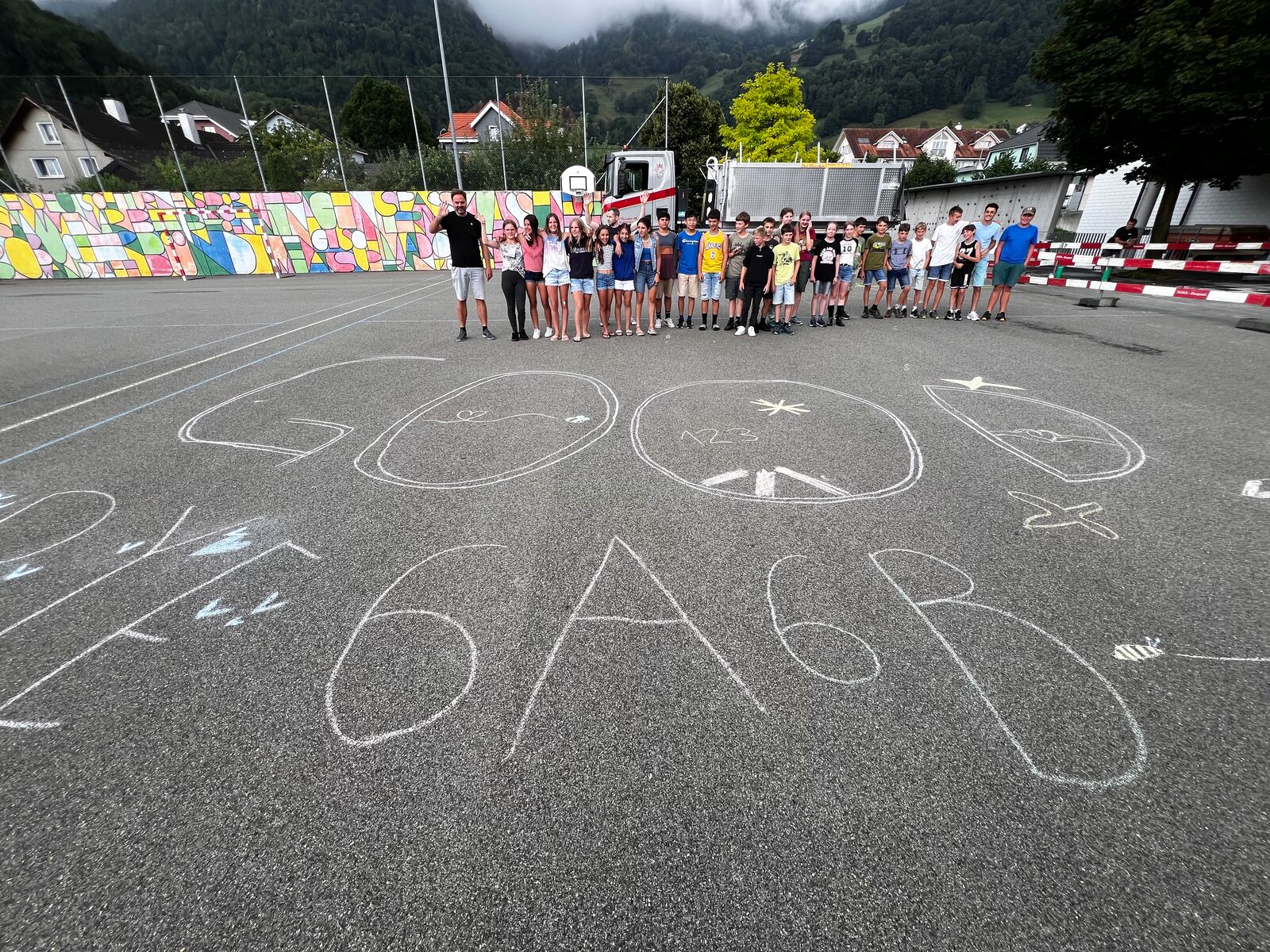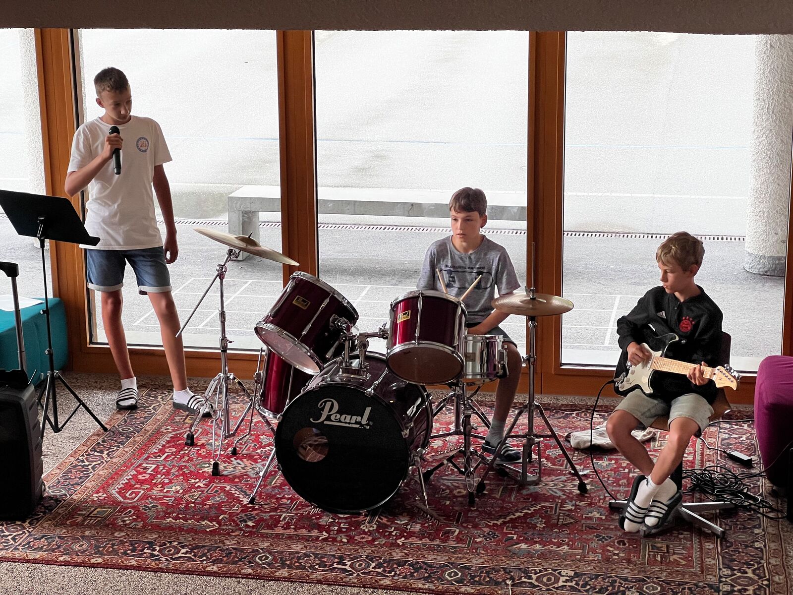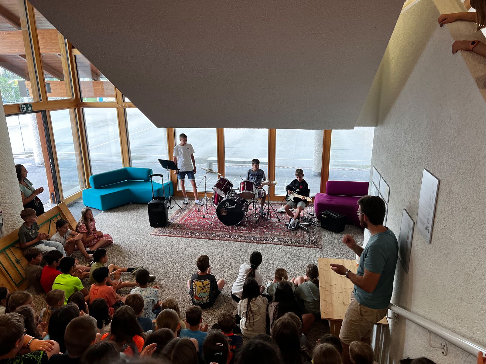 Stilvoll wurden die 6. Klassen von der ganzen Schule Bündt/Neubündt verabschiedet. Vor der Pause spielte eine Formation Sechstklässler mit einem rockigen Stück auf. Zum Abschied standen die Kinder der anderen Klassen Spalier und verabschiedeten die SechstklässlerInnen aus der Primarschule.