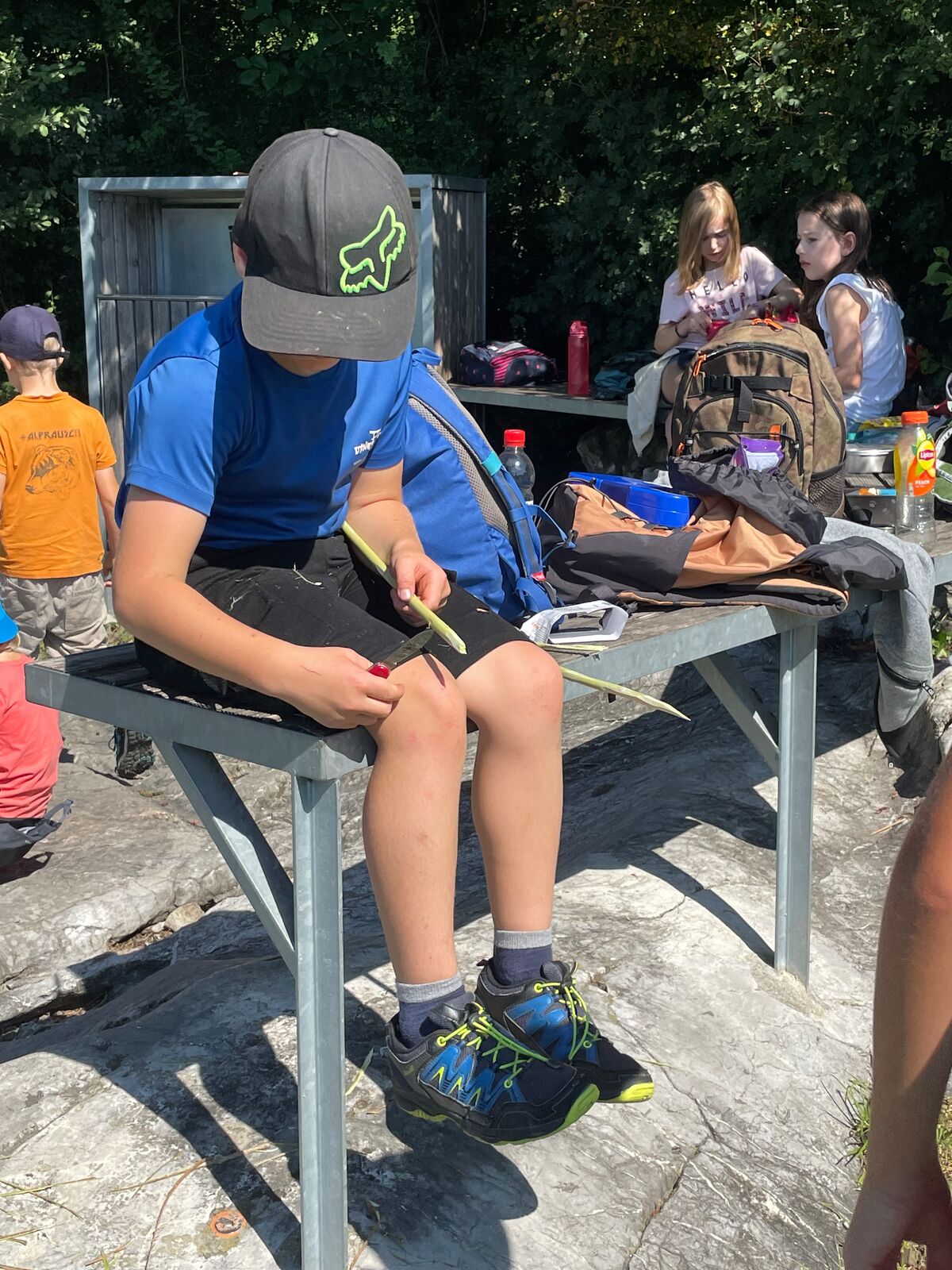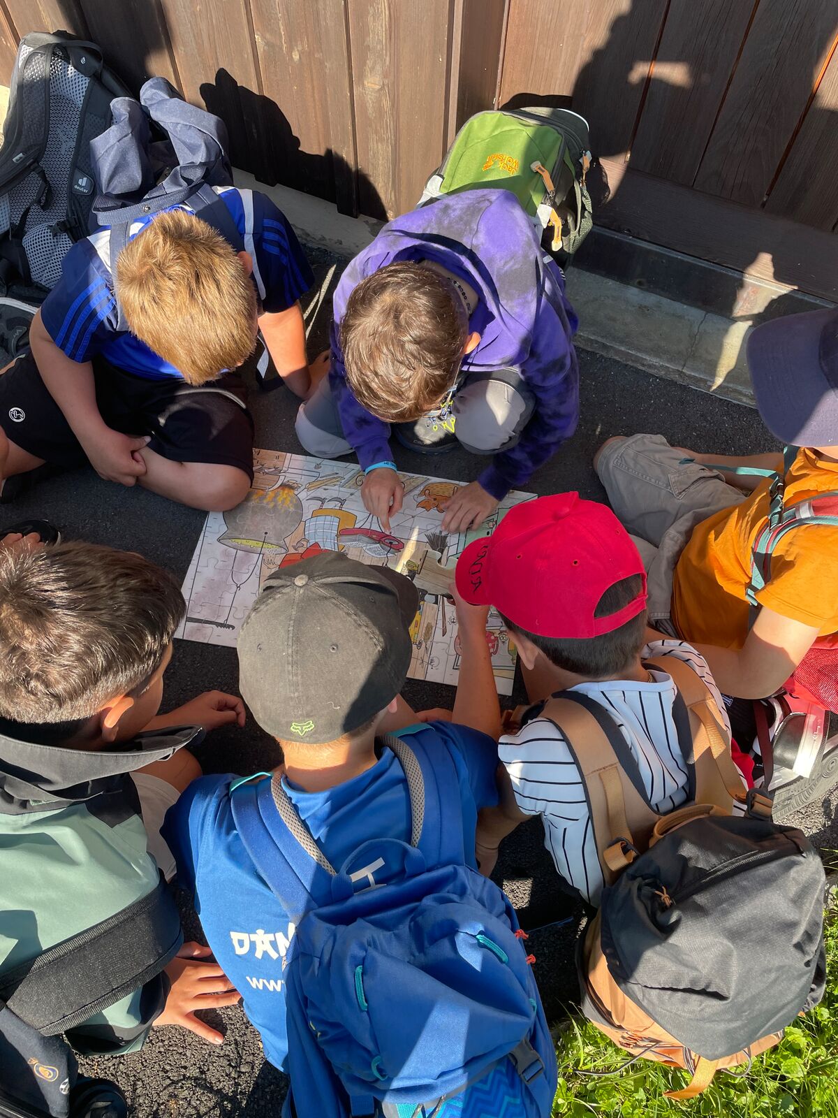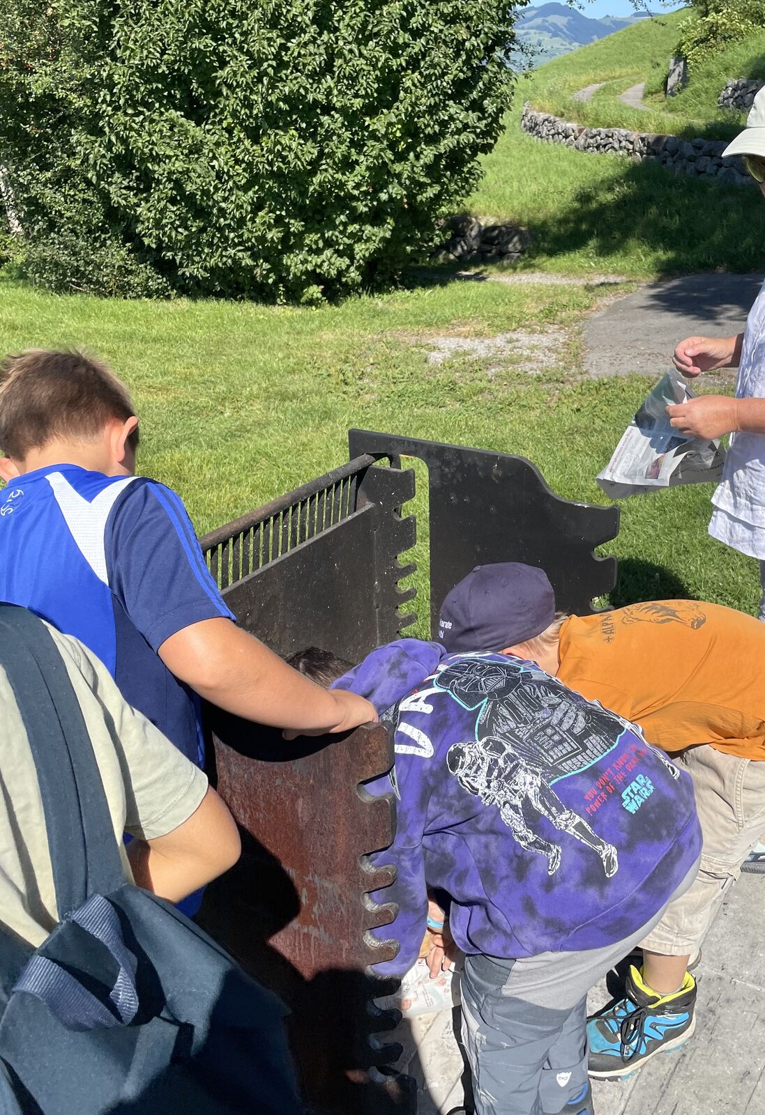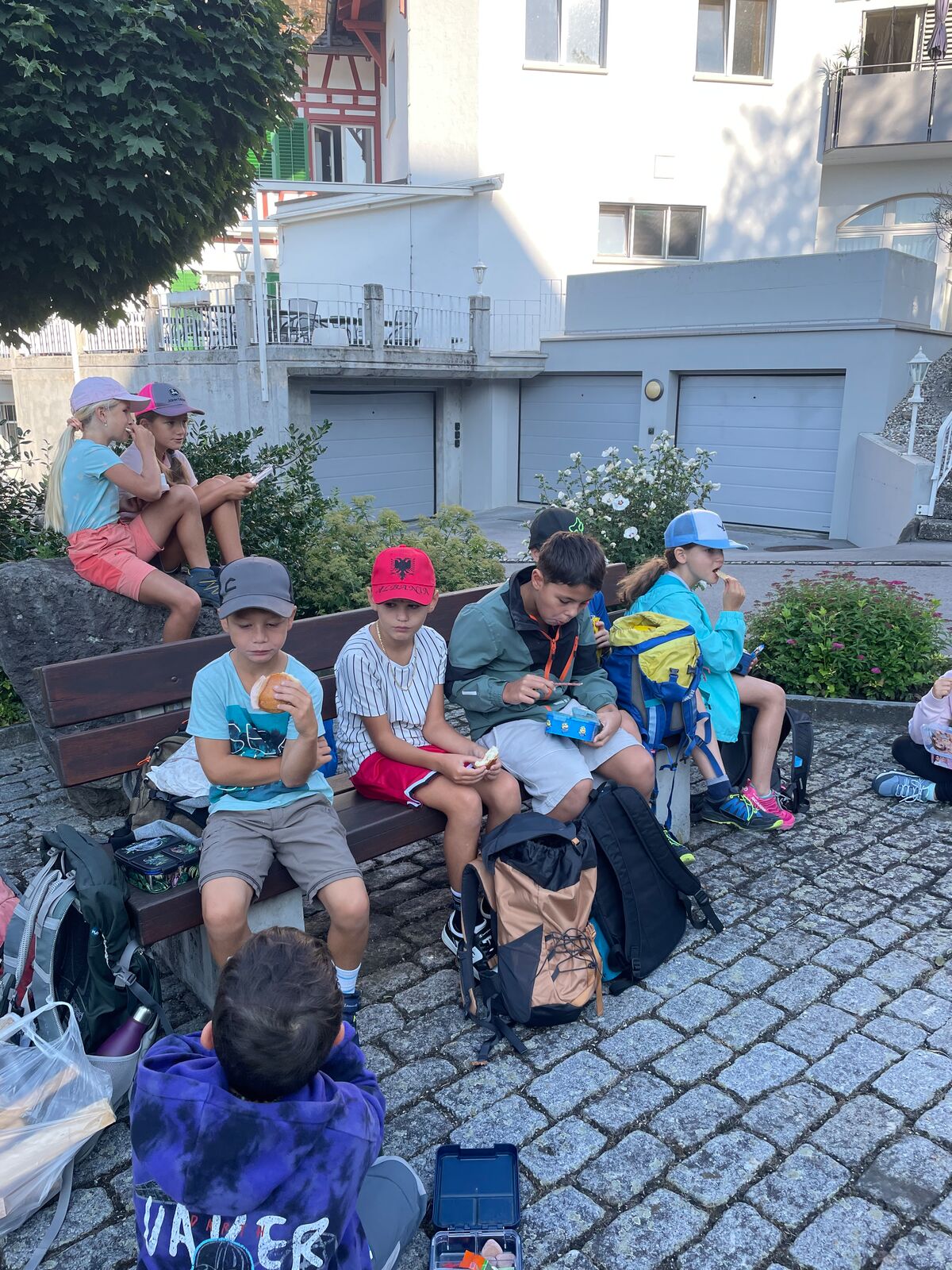Auf dem Montlinger Bergli legten wir eine Pause ein und grillierten gemeinsam, was für eine gemütliche Stimmung sorgte. Nach der Mittagspause wanderten wir zu Fuss wieder hinunter ins Dorf. Dort erfuhren wir, dass wir Türli und Flidari beim Rätsellösen helfen konnten – und tatsächlich fanden wir das richtige Lösungswort heraus.