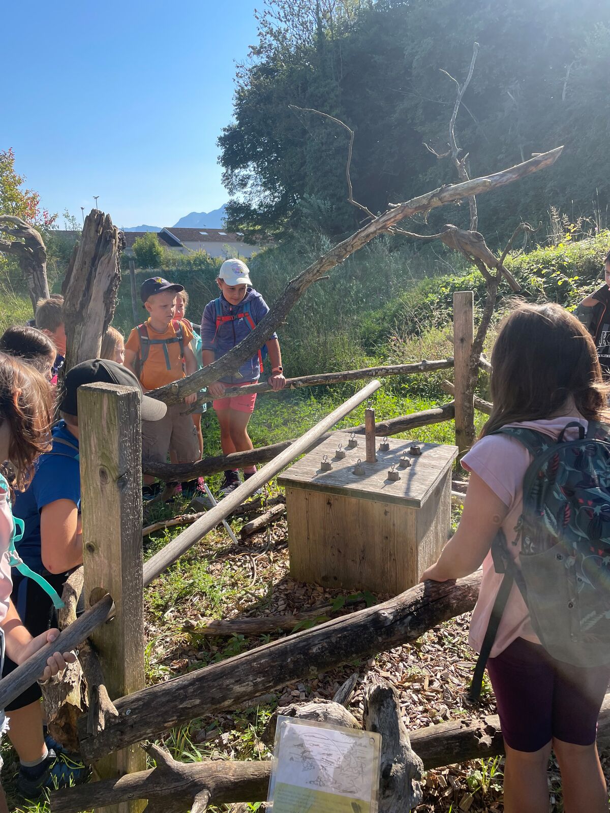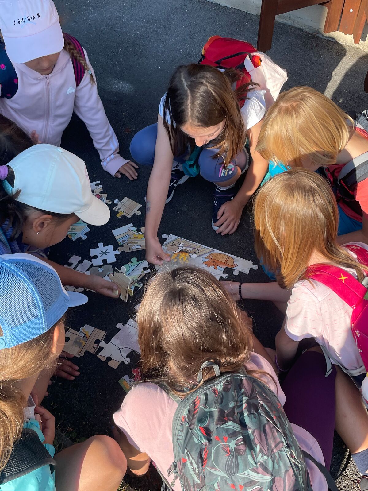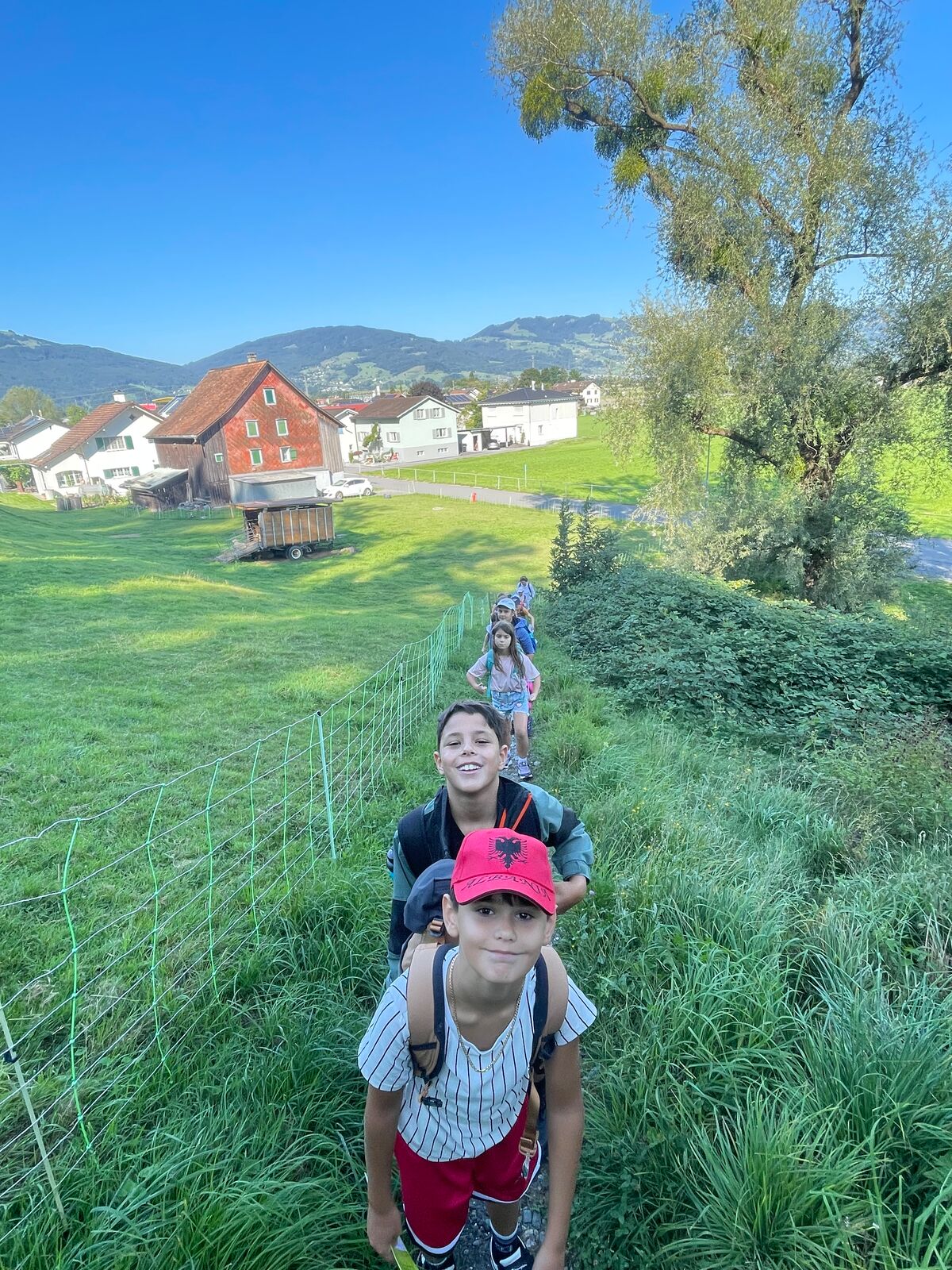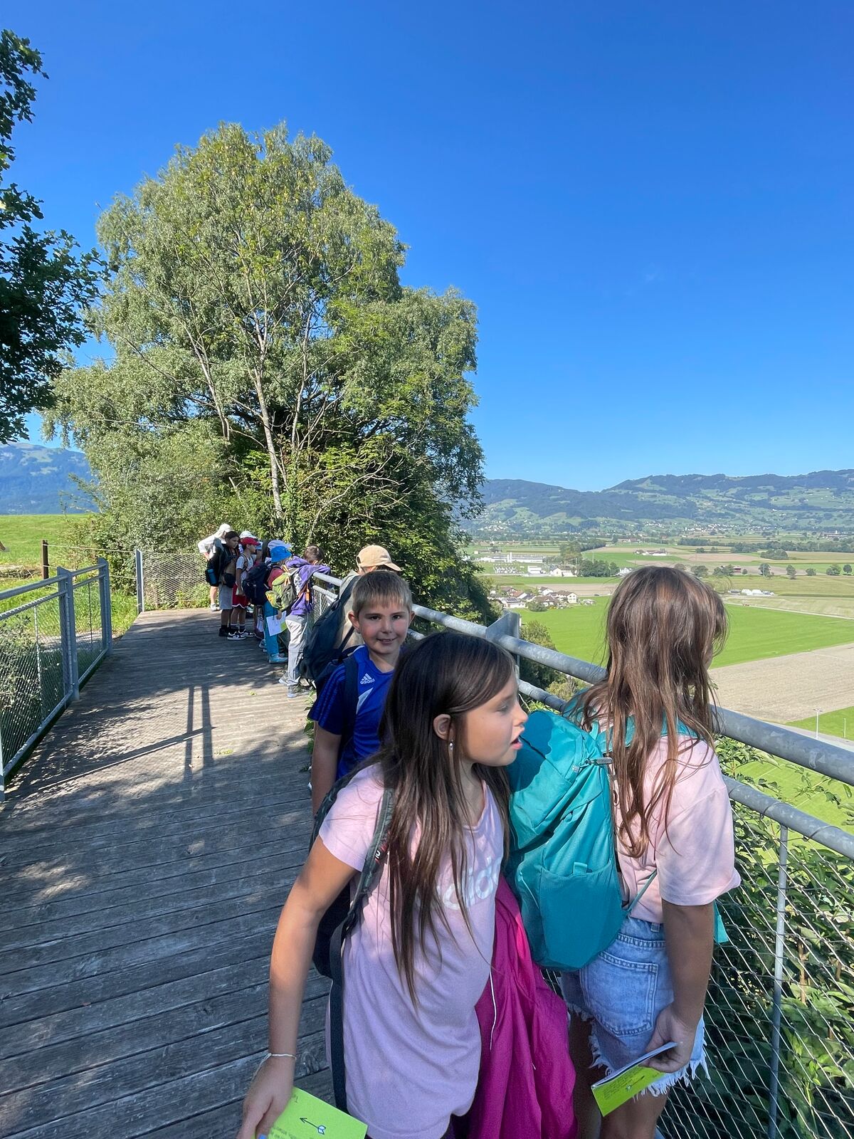 Unsere Schulreise führte uns nach Montlingen. Am Morgen starteten wir gemeinsam mit dem Bus in Rüthi und machten uns voller Vorfreude auf den Weg. Dort erwartete uns ein spannender Rätselweg, den wir als Gruppe lösen durften. So mussten wir zum Beispiel ein Puzzle richtig zusammensetzen, Türli und Flidari beim «Rheinholzen» helfen oder verschiedene Schätze finden.