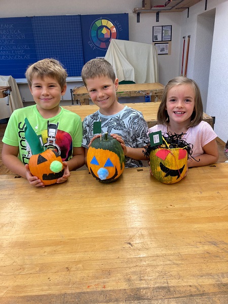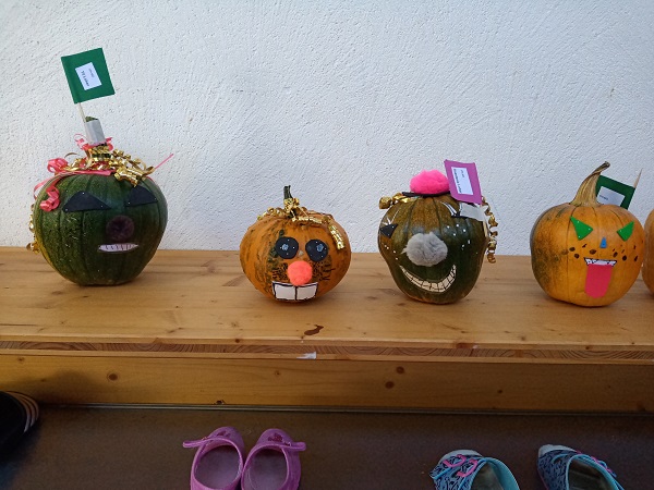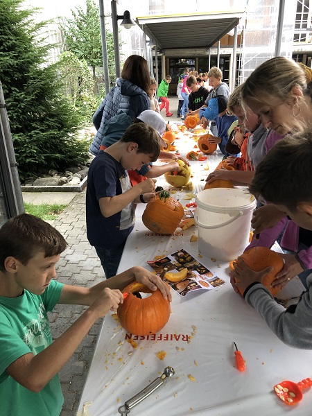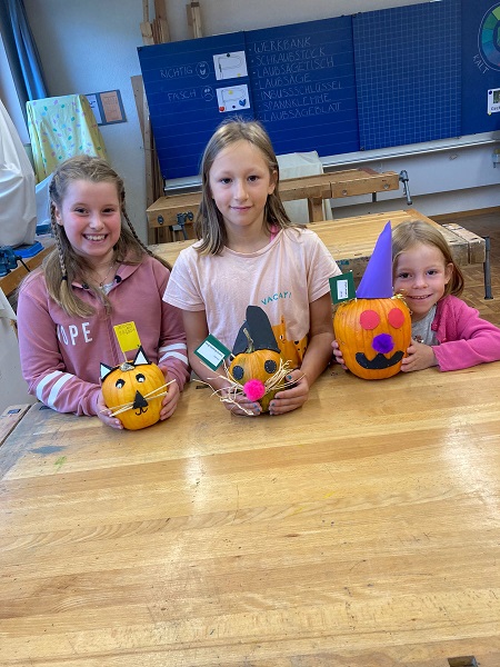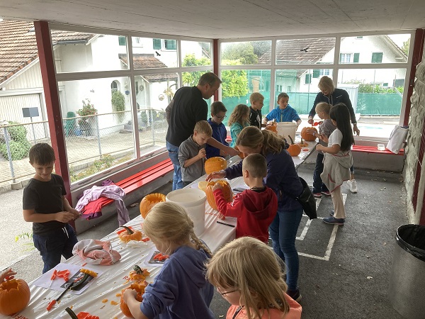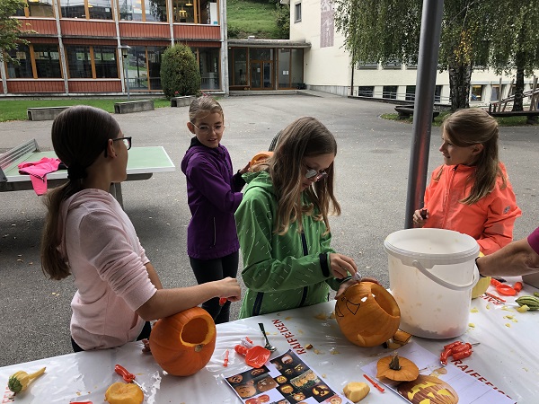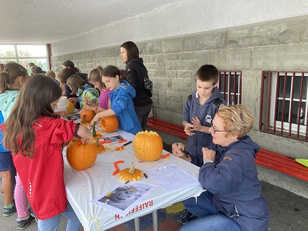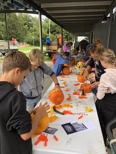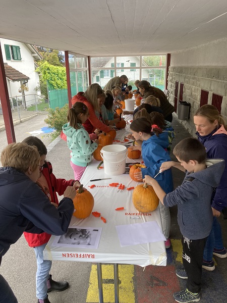 Vom Kindergarten bis zu zweiten Klasse haben die Kids ihrer Kreativität beim Verzieren freien Lauf gelassen und ab der dritten Klasse kam das Schnitzwerkzeug zum Einsatz. Alle Kürbisse wurden am Fest ausgestellt und die Kinder, die wollten, konnten beim Wettbewerb «schönster Kürbis» mitmachen.