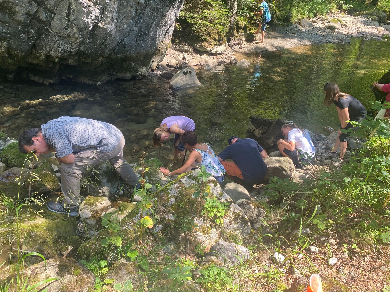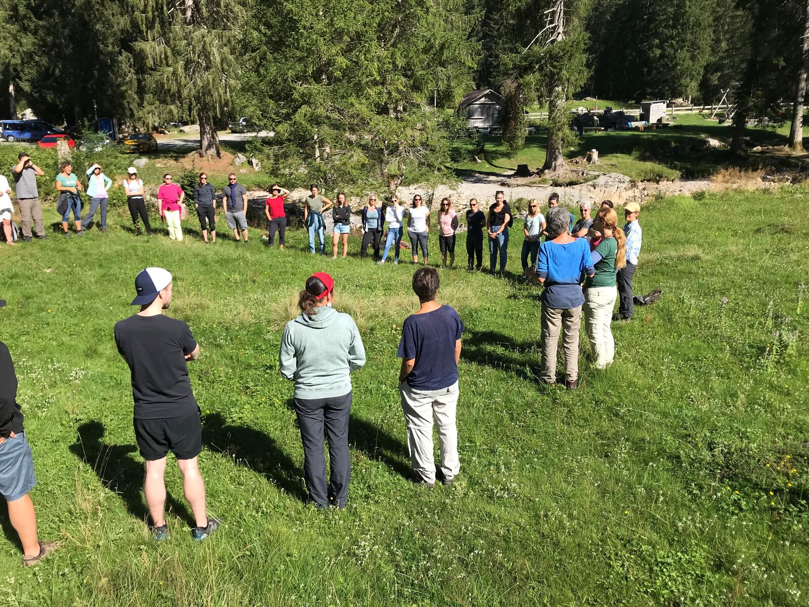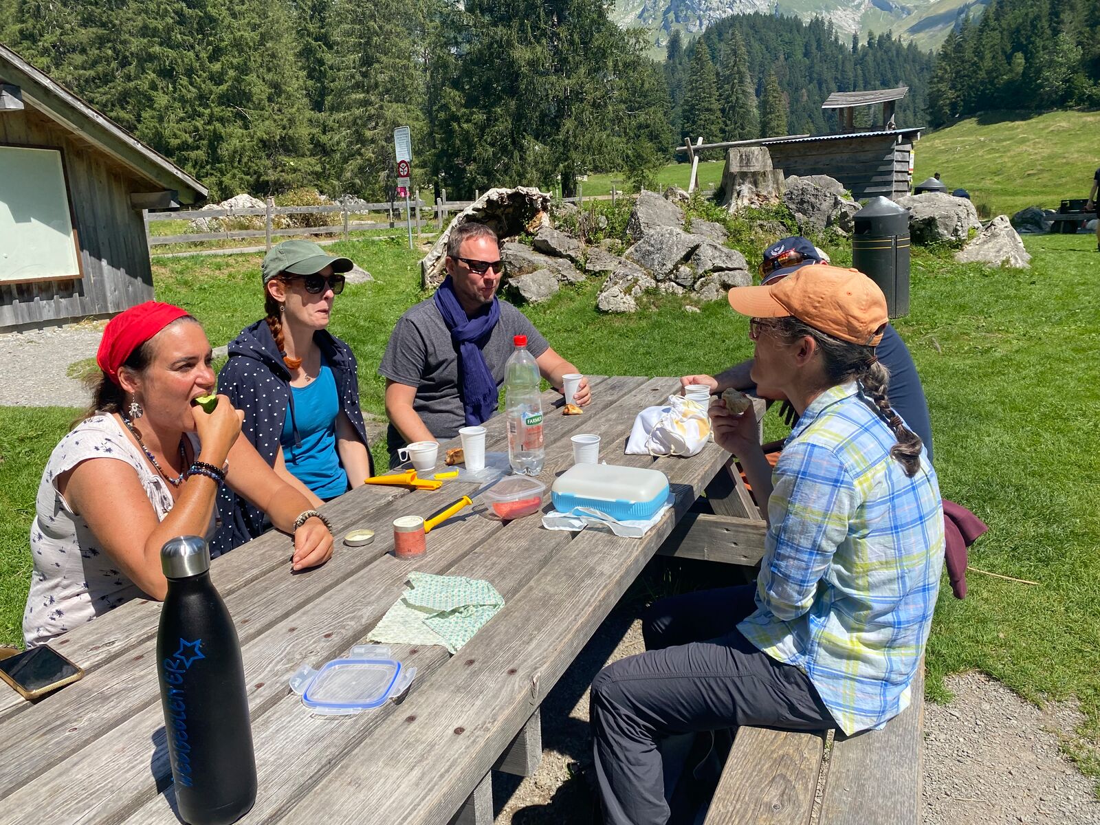 Am Mittwoch, 10. August verbrachte das Lehrerteam der Primarschule Lienz einen Weiterbildungstag zusammen mit der Primarschule Rüthi und der Primarschule Kobelwald-Hub-Hard zum Thema 'Draussen unterrichten'. Die Weiterbildung fand rund um die Feuerstelle Laui oberhalb von Unterwasser statt. Zwei Lehrerinnen der Rucksackschule zeigten uns viele verschiedene Unterrichtsideen und Umsetzungsmöglichkeiten von verschiedensten Themen im Freien. Unsere Lienzer Schülerinnen und Schüler dürfen sich nun also auf spannende Unterrichtssequenzen rund ums Schulhaus und im Waldschulzimmer freuen.