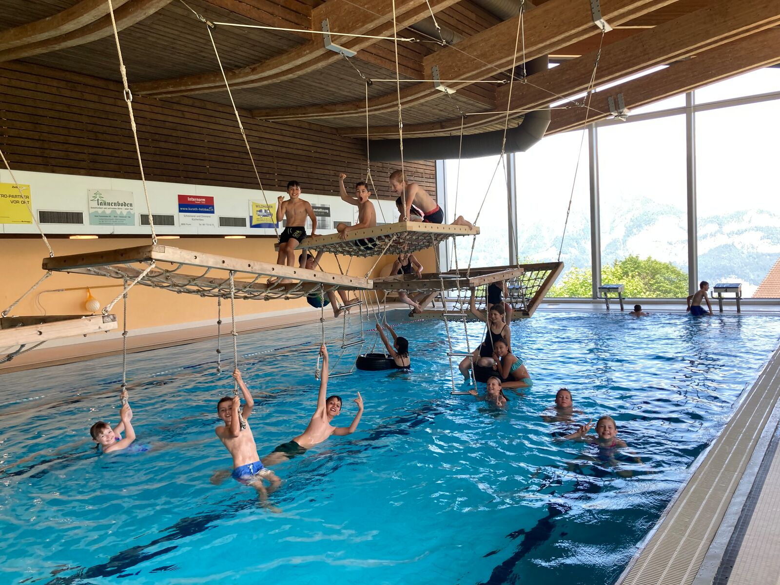 Heute assen wir ausnahmsweise im Lagerhaus zu Mittag. Es gab einen Spaghettiplausch mit Erbsen. Das war ziemlich lecker. Da Julian Geburtstag hatte, brachte er kleine Küchlein mit. Herr Eggenberger hatte zwölf Kerzen auf das kleine Törtchen gesetzt, was ziemlich lustig aussah. Alle bekamen solch ein Törtchen. Am Nachmittag liefen wir zum Hallenbad Flumserberg, wo wir sehr viel Spass auf dem Tarzan Parkours hatten. Manche lernten sogar den Salto. Am Kiosk durften wir etwas Süsses kaufen. Zwei Stunden später standen wir unter den Duschen. Als wir zuhause ankamen, packten wir unsere Rucksack aus.
