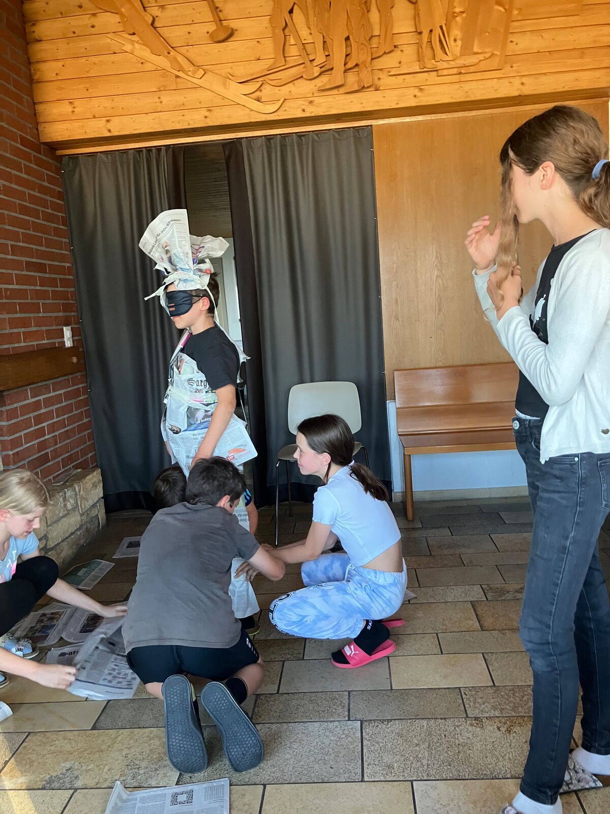 Heute konnten wir länger ausschlafen. Manche schliefen noch, als die anderen mit dem Frühstück schon fertig waren. Die Jungs wollten schon früh aus dem Haus, um Fussball zu spielen. Die Mädchen richteten ihre Betten und gingen dann zum Spielplatz.