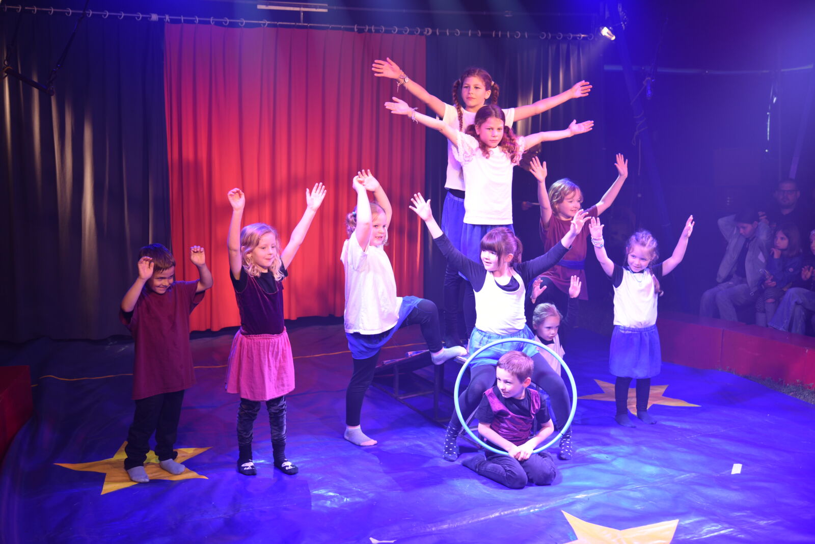 In der Primarschule Lienz gastierte während einer Projektwoche der Zirkus Bengalo. Alle Schülerinnen und Schüler vom ersten Kindergarten bis zur 6. Klasse studierten zwei Zirkusnummern ein. Während die einen auf Fässern liefen, sprangen die anderen von Fass zu Fass. Wieder andere liefen auf einer Kugel, balancierten auf einem Seil oder sprangen auf dem Trampolin. Nicht fehlen durfte natürlich die Clownnummer, welche bravourös gespielt wurde. Die Magier Mika und Marco verzauberten das Publikum mit ihren Zaubertricks. In der einen Nummer liessen sie einen Würfel verschwinden, in der anderen Nummer zauberten sie plötzlich einen Sack Popcorn aus einer zuvor leeren Kiste.