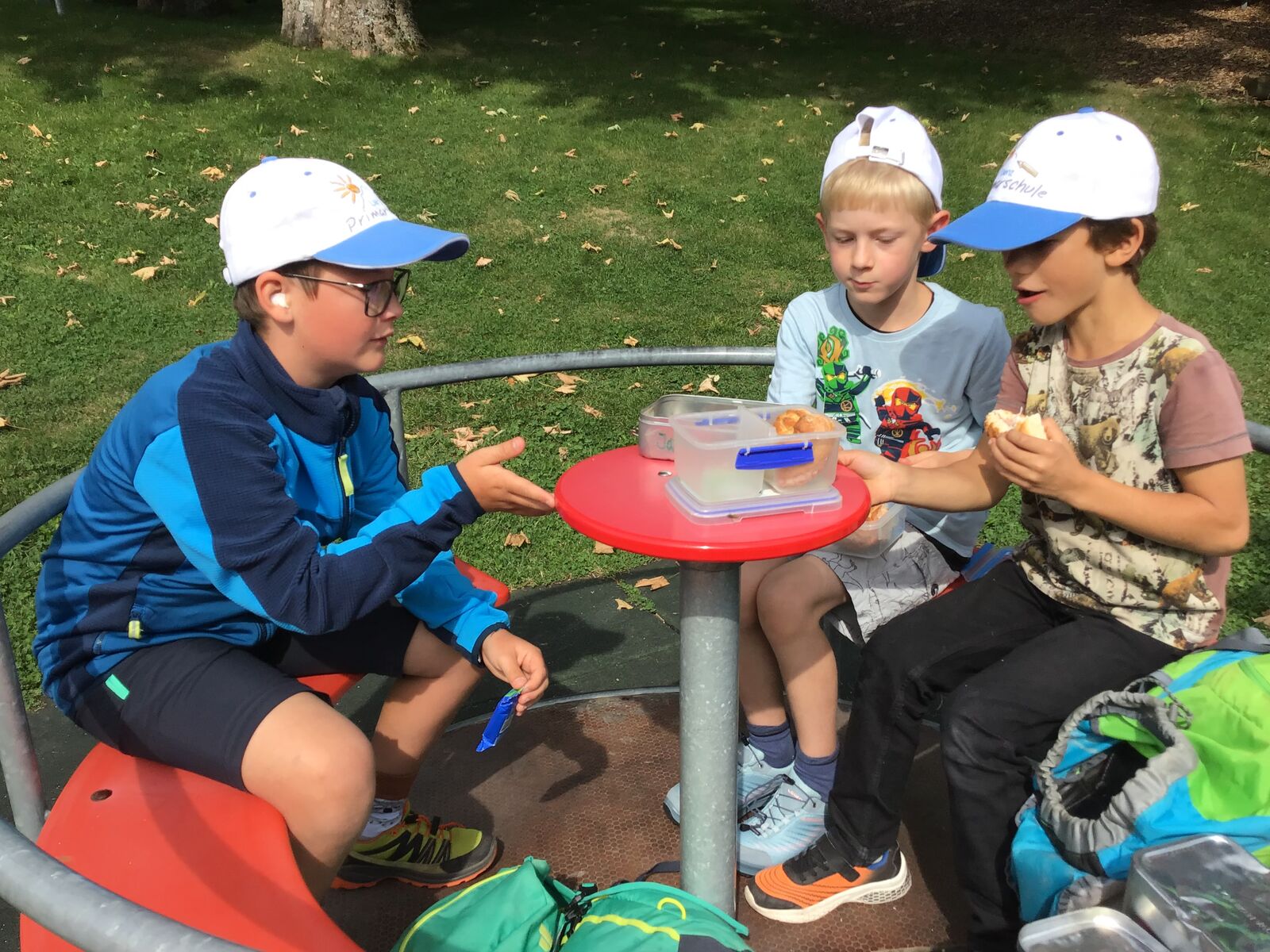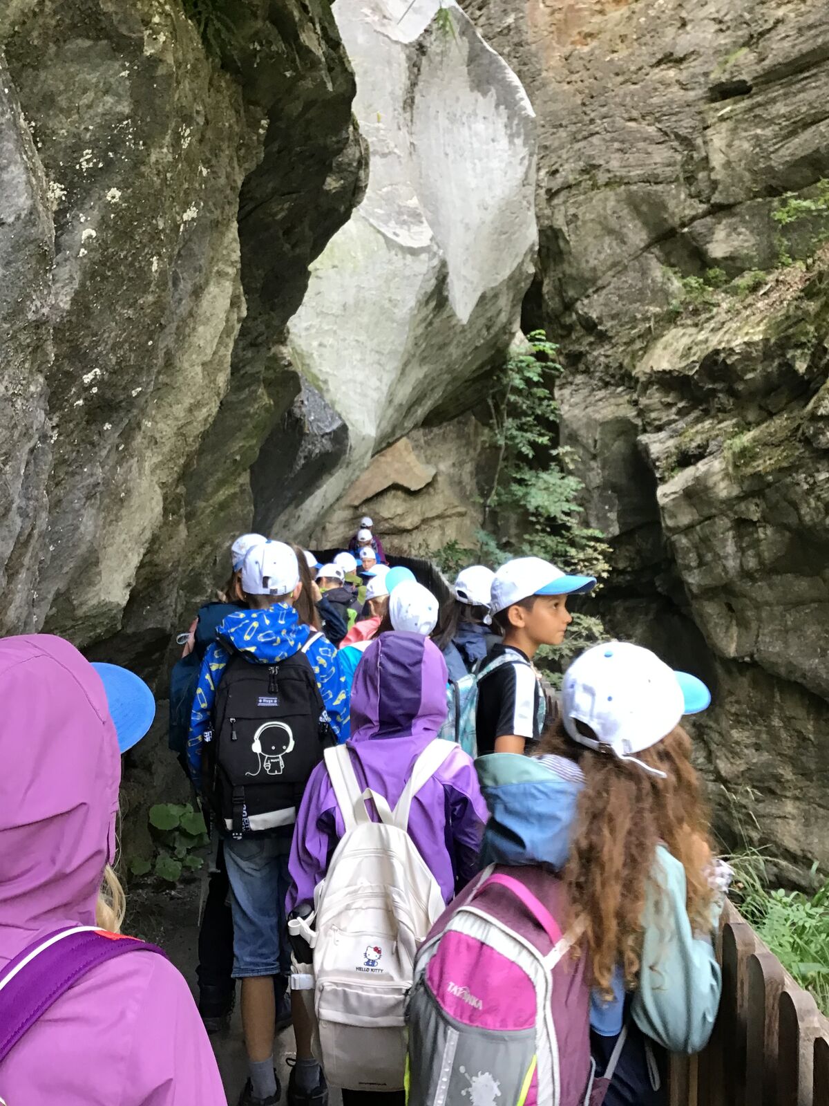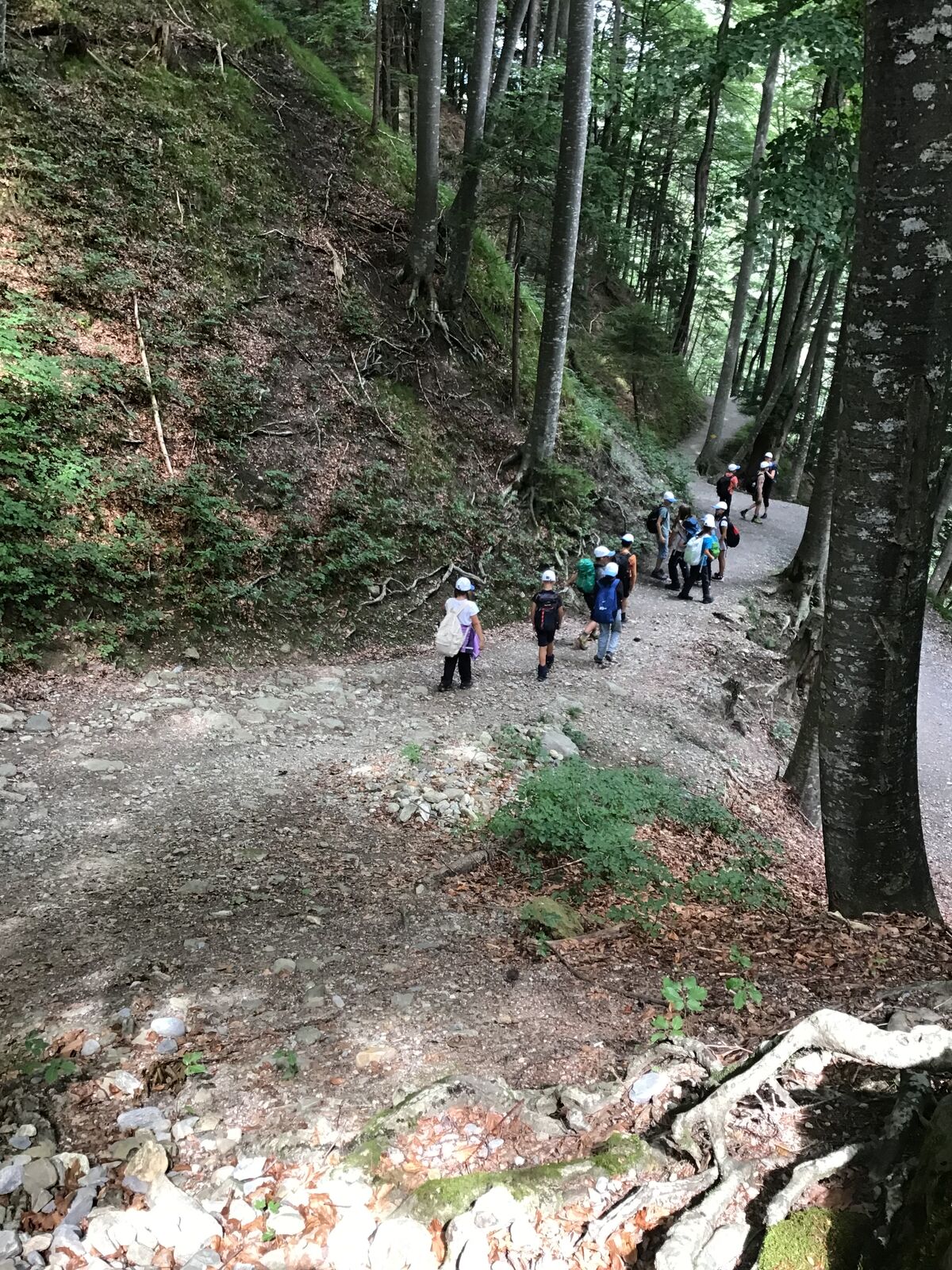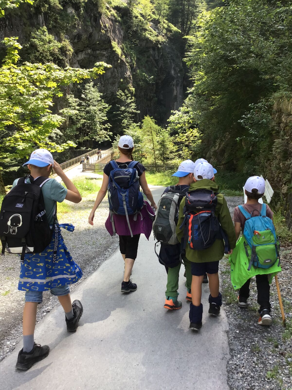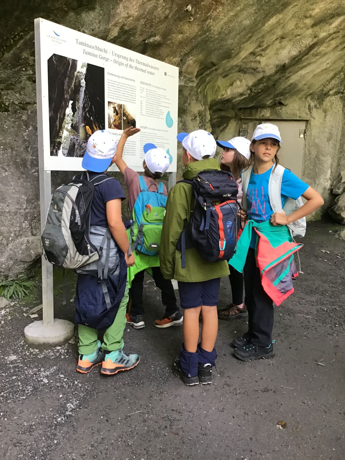 Am Morgen kamen wir mit Vorfreude in die Schule. Dann haben wir die Koffer in den Schulbus eingeladen und sind zur Bushaltestelle gelaufen. Wir sind dann mit dem Bus nach Buchs und von da mit dem Zug nach Bad Ragaz gefahren. Vom Bahnhof sind wir gemütlich ins Pfadihaus gelaufen und haben die Koffer ins Zimmer getan. Nachdem wir den feinen Znüni eingepackt hatten, fuhren wir mit dem Bus nach Valens. Frau Eggenberger hatte eingeplant, dass wir vor dem Besuch der Tamina Schlucht noch auf einen großen Spielplatz gehen. Wir hatten viel Spass auf dem Spielplatz mit dem grossen Turm. Nachdem wir den Znüni gegessen haben, sind wir einen wunderschönen Weg entlang zum Bad Pfäfers gelaufen. Dort haben wir von Frau Eggenberger ein Glace oder Pommes Frites spendiert bekommen. Mit voller Erwartung durchschritten wir das Tor in die Tamina Schlucht. Wir waren schon eine Weile in der schönen Schlucht, als wir bei der 36 Grad warmen Quelle ankamen. Dort war es ganz warm! Als wir uns von dem Anblick losreissen konnten, liefen wir einen langen Weg der Tamina entlang bis wir wieder beim Pfadihaus ankamen. Dann haben wir leckere Wienerli im Teigmantel genossen, welche Daniela Kobler für uns gebacken hatte. Im Nachhinein hatten wir noch einen lustigen Spieleabend draussen. Wir haben Verstecken gespielt, bis es dunkel wurde.