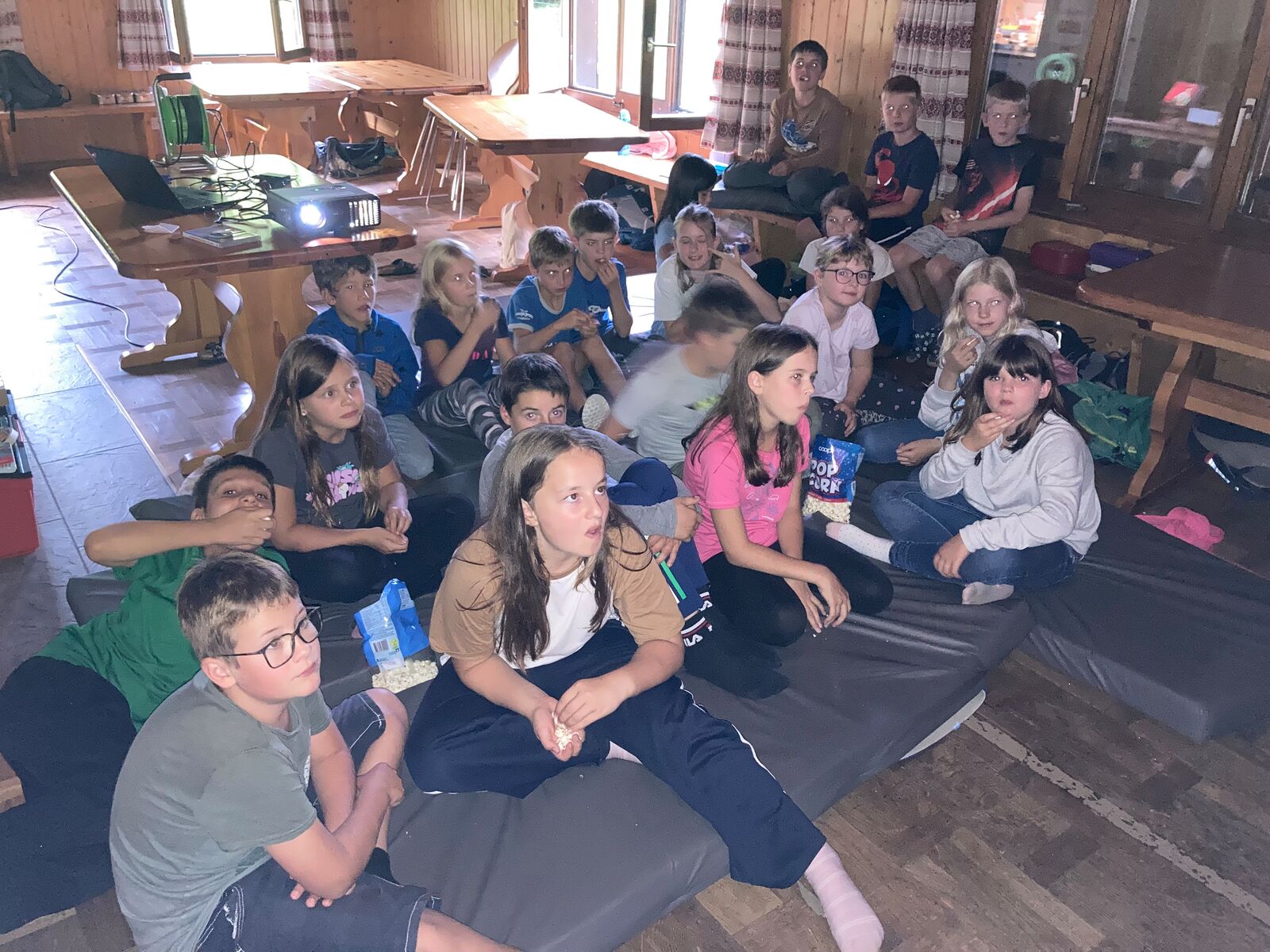 Zurück im Lagerhaus hatten wir Spielzeit. Daniela Kobler kochte für uns sehr leckere Spaghetti. Als Abendprogramm schauten wir Minions 4, den wir sehr lustig fanden. Danach waren wir sehr müde, putzten die Zähne und fielen ins Bett. Herr Eggenberger las uns ein Kapitel aus dem Buch «Im Wolfswald» vor.