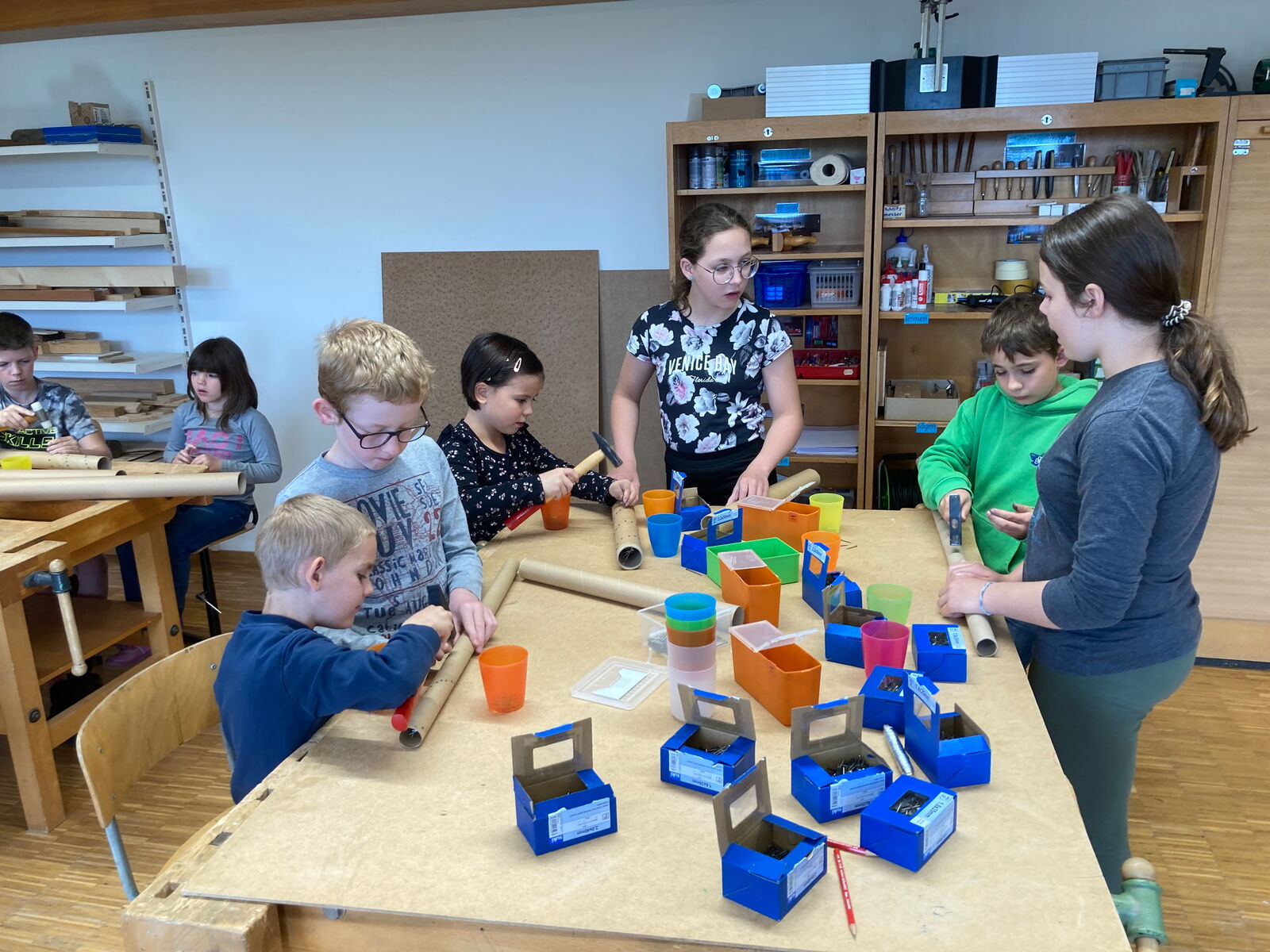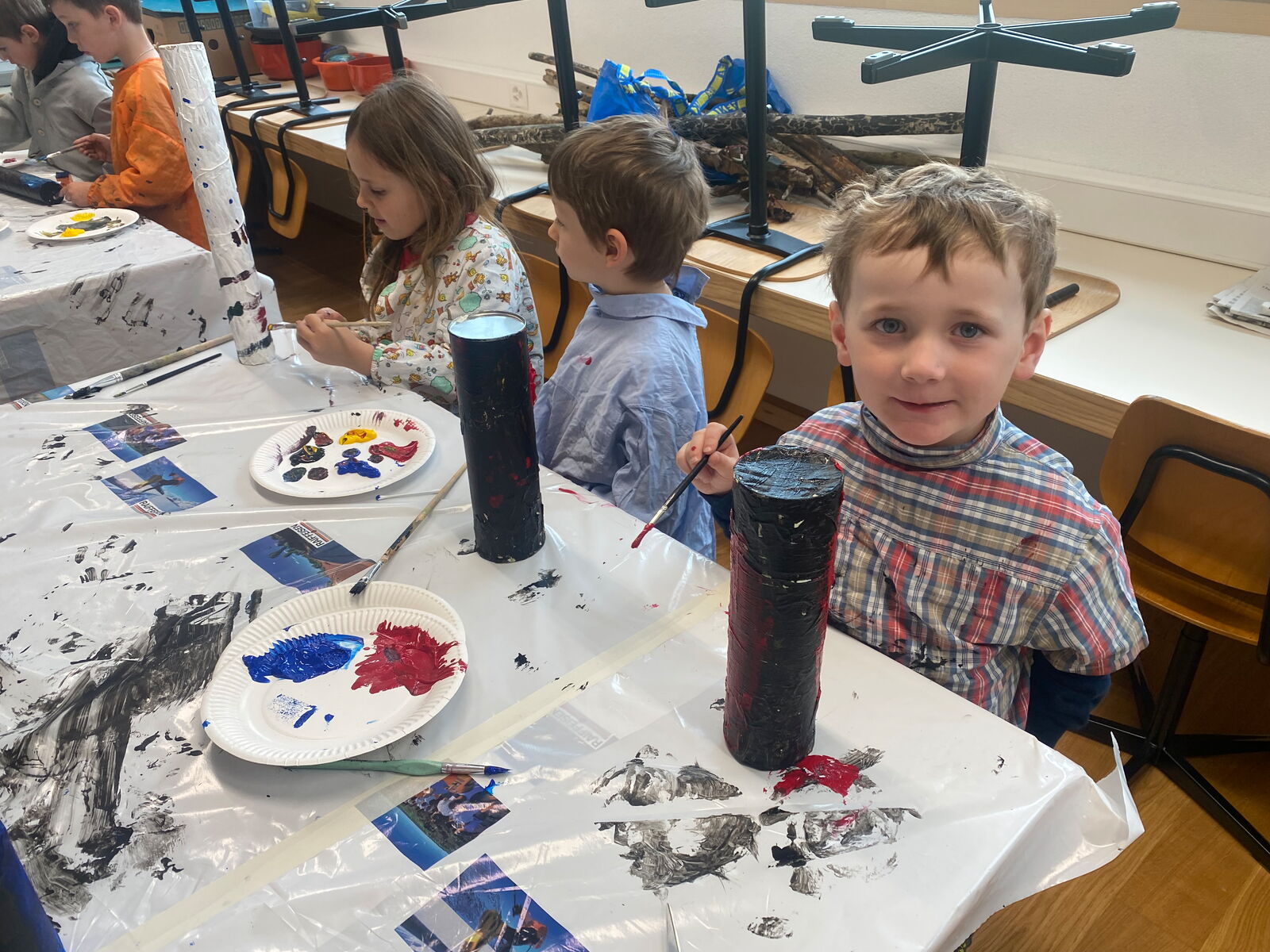 Gemeinsam starteten wir mit dem Projekt 'Rainmaker' in den Tag. Grosse Hände halfen kleinen Händen beim Einschlagen von Nägeln und Verzieren der Instrumente. Nach der Pause durften die Kinder bei einem selbstgewählten Angebot verweilen.