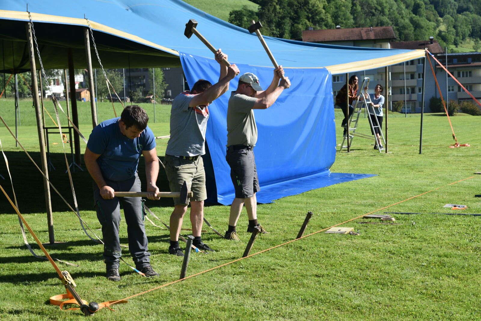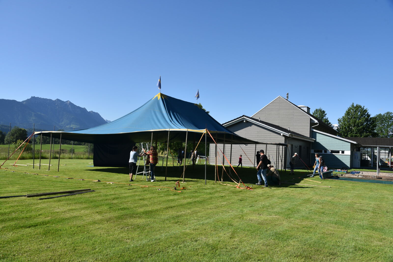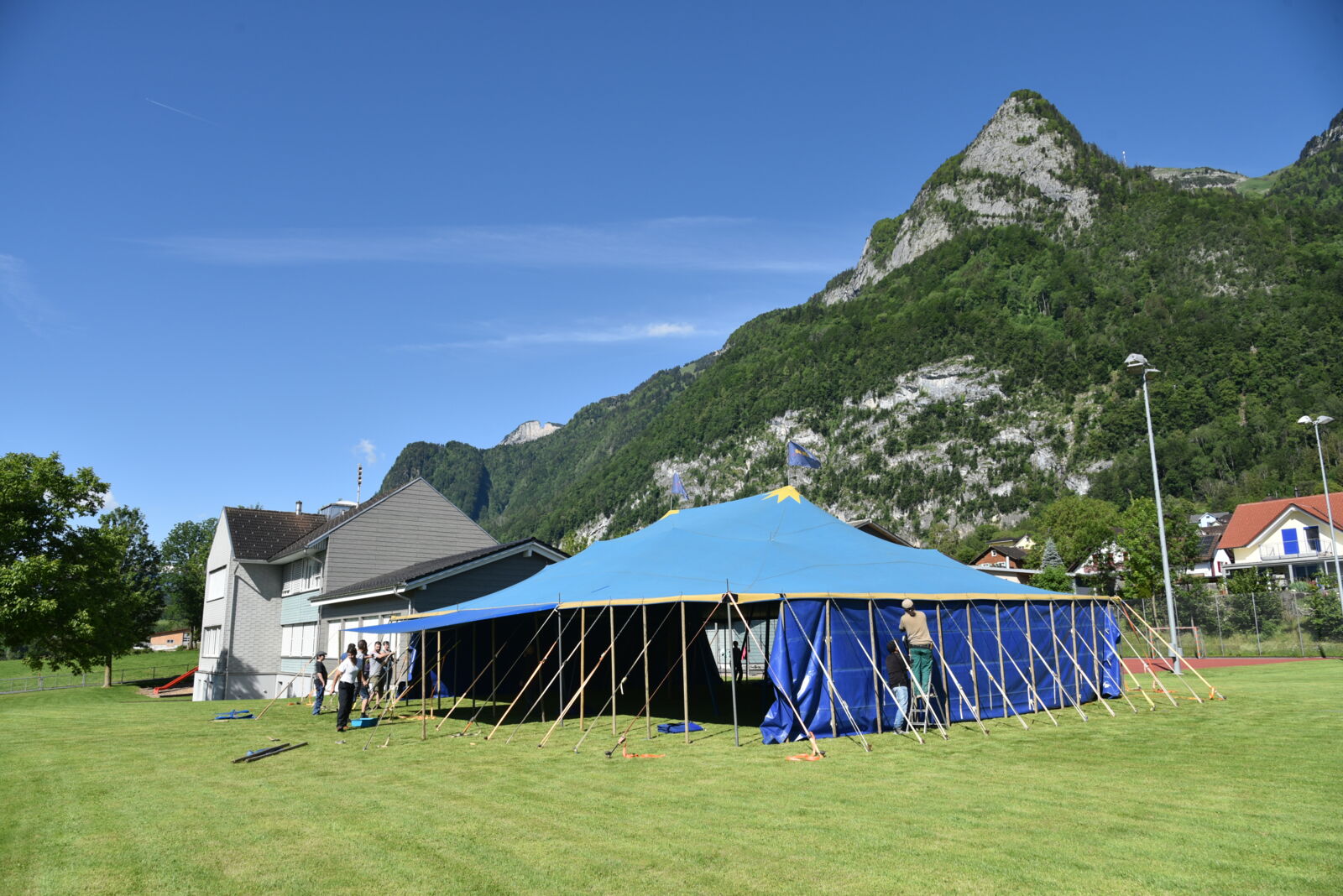 Mit vereinten Kräften unterstützten mehrere Elternteile den Aufbau des Zirkus am Sonntag, 26. Mai 2024, damit für die Zirkuswoche an der Primarschule Lienz bereit war. Manch ein Kind liess es sich nicht nehmen bereits am Sonntag das fertig aufgebaute Zirkuszelt zu bestaunen und einen Blick in die Manege zu erhaschen.