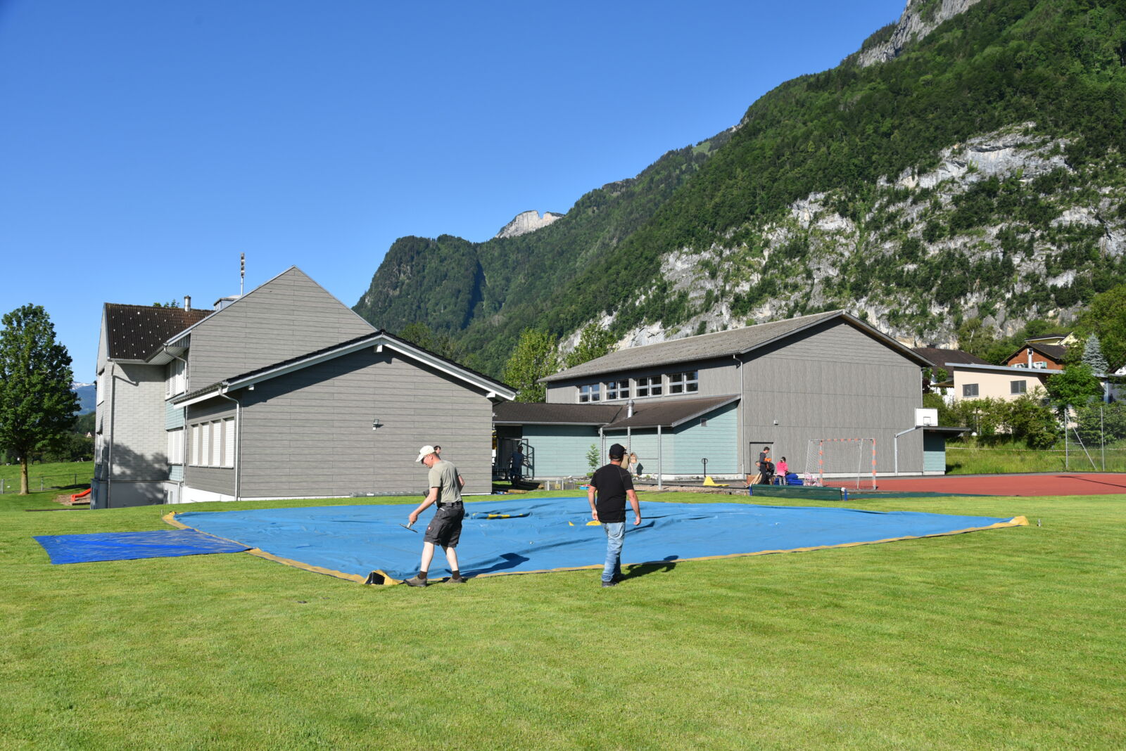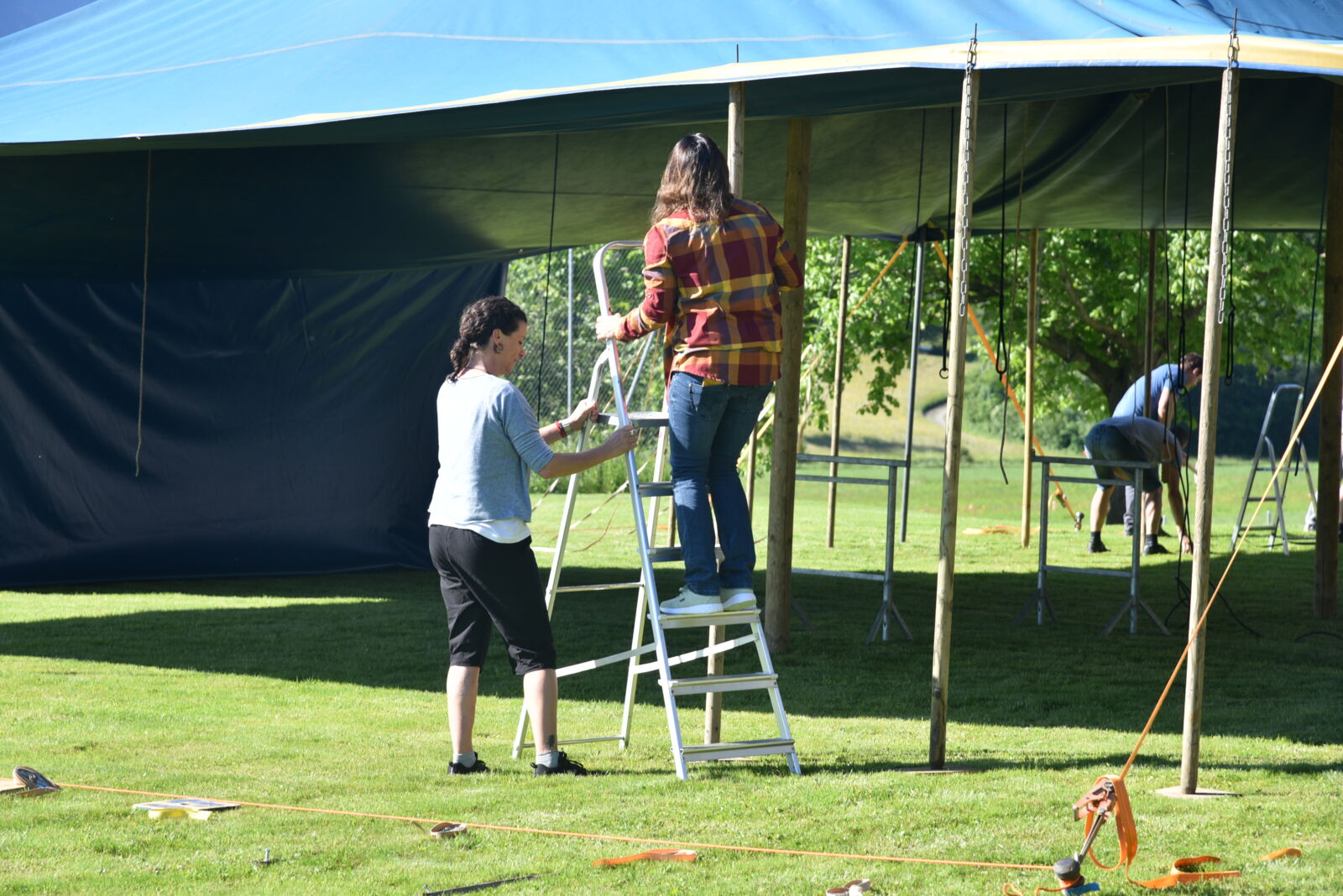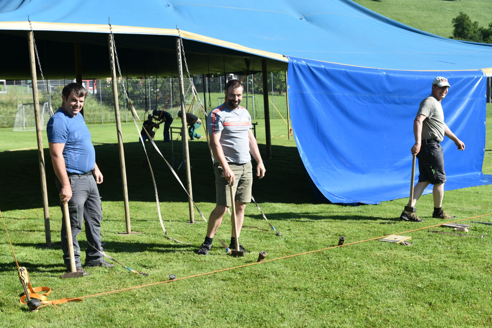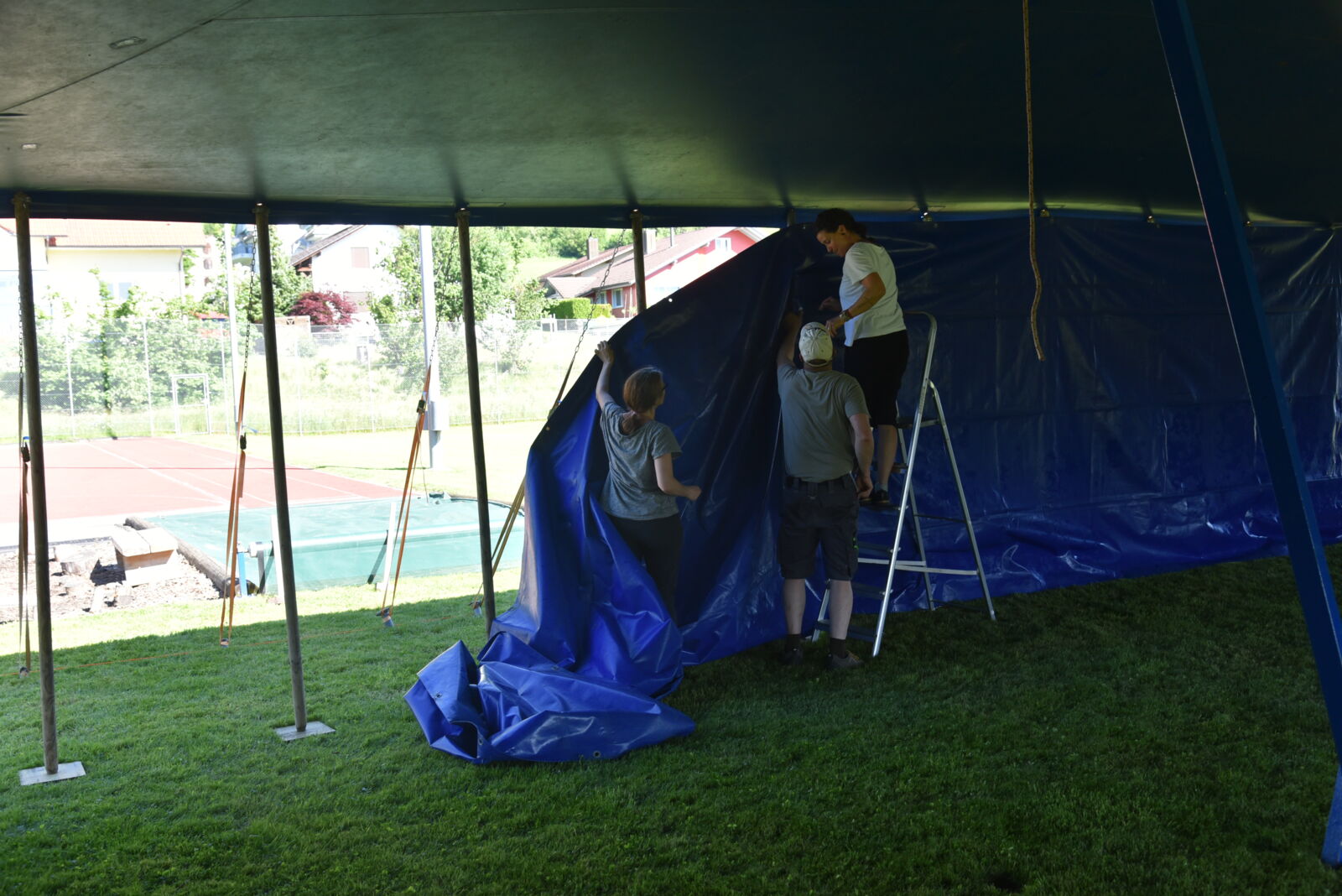 Mit vereinten Kräften unterstützten mehrere Elternteile den Aufbau des Zirkus am Sonntag, 26. Mai 2024, damit für die Zirkuswoche an der Primarschule Lienz bereit war. Manch ein Kind liess es sich nicht nehmen bereits am Sonntag das fertig aufgebaute Zirkuszelt zu bestaunen und einen Blick in die Manege zu erhaschen.