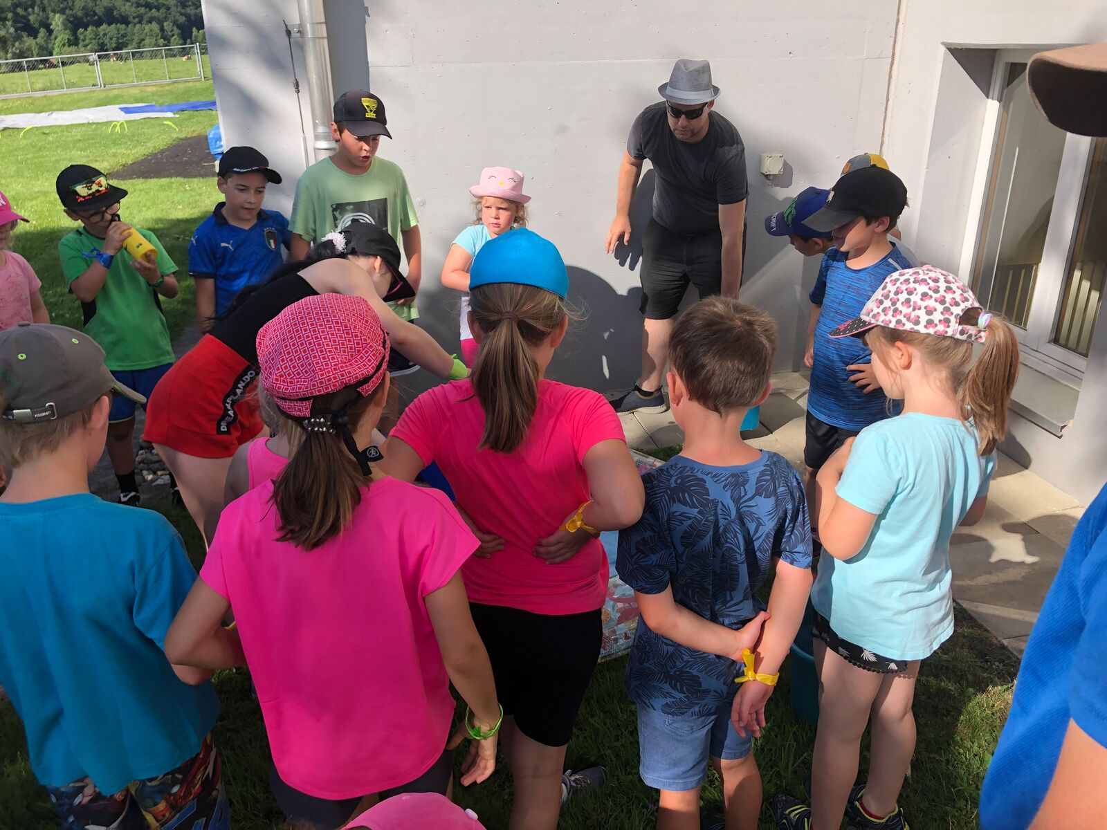 Die Kinder hatten sichtlich Spass, wurden herausgefordert und haben zusammen ein grosses Ziel erreicht. Bei jedem Posten konnten sie Wasser gewinnen und haben so miteinander das ganze Bädli gefüllt, so dass sie die volle Zeit (30 Minuten) Wasserplausch geniessen durften. Die Wasserschlacht und die Wasserrutsche waren dann bei perfektem Wetter der krönende Abschluss des Sporttages.