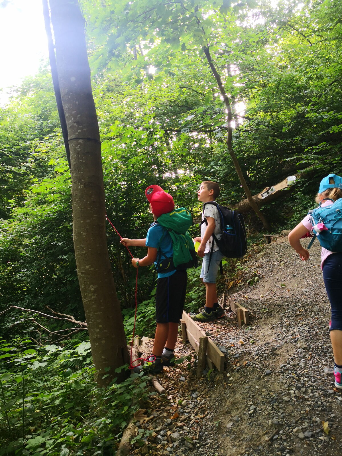 Am 22. Juni 2023 waren wir in Montlingen beim Türli- und Flidariweg. Mit dem Bus fuhren wir in Lienz ab und zu Fuss ging es bei der Montlinger Kirche los. Als Hexen, Isariatgoass, Türli oder Fliidarli durften wir viele Rätsel lösen. Bei einem Posten mussten wir Hölzchen angeln mit Zahlen drauf. Auf manchen stand aber "Pech" oder "leider nein". Mit den drei Zahlen kann man ein Schloss öffnen. Dann kann man mit dem Spechtschnabel einen Buchstaben aufs Postenblatt stanzen. Oben auf dem Montlinger Bergli mussten wir mit einem Holzfernrohr Gebäude in anderen Dörfern finden. Wir haben sehr geschwitzt. Auf dem Heimweg stiegen die "Hexen" eine Bushaltestelle früher aus und haben für alle Glace gekauft. Nach dem Glace essen fuhren wir zurück nach Lienz.