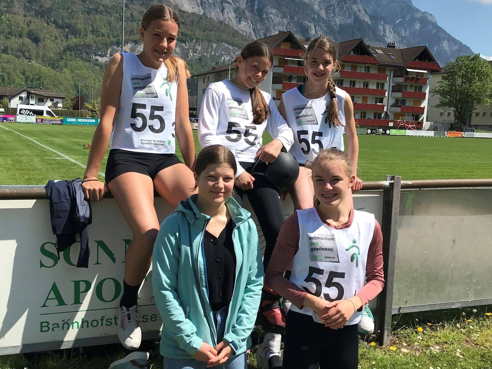 Fünf Mädchen des OZ Montlingen nahmen erfolgreich an der Polysportive Stafette in Flums teil.