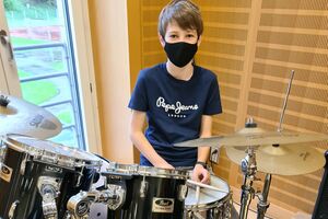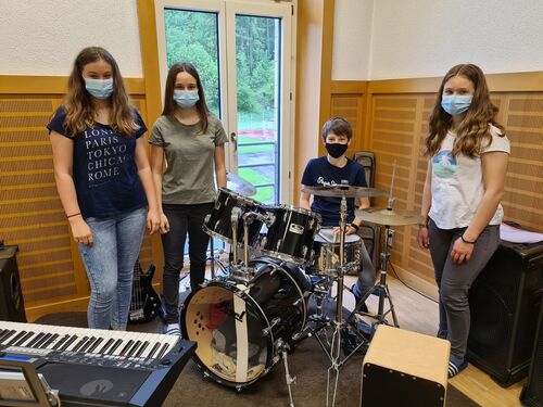Der Sondertagekurs «Voice of OZM» entpuppte sich dieses Jahr schon bald mehr als Bandprojekt wie als Chor oder Gesangsgruppe. Drei Mädchen und ein Junge bilden das musikalische Team. Timo gibt am Schlagzeug und am Cajun den Rhythmus vor, während dessen Tamara, Alina und Carina singen und sich dabei vom Kursleiter ab und an am Klavier begleiten lassen. Demokratisch entschied sich die Gruppe für das Üben von Liedern wie Highway to hell, Summer of 69, Dance with somebody, Believer, Human, Rise, Million Reasons oder beispielsweise Mad world in der Riverdale - Version. Dies fand statt, nachdem die Gruppe ca. 40 vorbereitete Lieder ausprobierte. Es dauerte einige Zeit, bis sich die Jugendlichen mehr trauten und zutrauten, da man bei einer solchen Liederwahl schnell realisiert, warum die entsprechenden Interpreten so viel Erfolg haben; es ist schwer, solche Lieder zum Klingen zu bringen als Schülergruppe. Nichts desto trotz waren alle mit Eifer, Freude und grossem Einsatz dabei. Dies bereitet auch dem Kursleiter grossen Spass und bietet eine sehr willkommene und emotionale Abwechslung zum Schulalltag. Musik ist wohl in unser aller Ohren und Herzen, öfter, als man denkt.